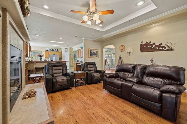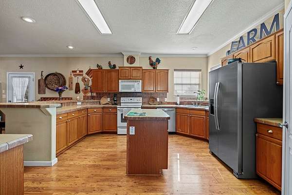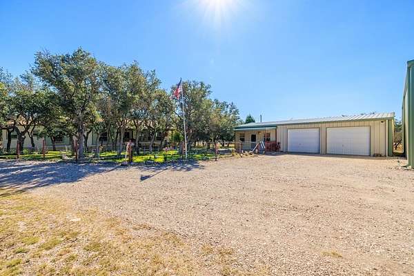 Chiquita's Ranch offers a peaceful Hill Country homestead in the desirable Kimble Oaks subdivision, set on 5+/- acres with mature trees and open space for country living. The well-kept 2,040 sq ft residence, features 3-bed/2-bath with an open-concept kitchen, dining, and living area that welcomes you with a wood-burning fireplace, perfect for cozy evenings. A formal dining room adds even more room for entertaining, while the covered porch and outdoor sitting areas invite quiet mornings & relaxing evenings under the Texas sky. A separate 600 sq ft guest house adds wonderful flexibility, perfect for hosting family, a private office or studio, or potential rental space. It includes a full bathroom and kitchenette for complete convenience. The property also delivers outstanding storage and workspace; featuring a 2 car garage plus a large RV barn/garage with oversized roll-up doors, perfect for trailers, boats, farm gear, or workshop needs. A 5 GPM private well, septic system, and CTEC electric provide reliable utilities, while the low-maintenance acreage keeps upkeep simple. Chiquita's Ranch offers the privacy of country living with quick access to surrounding towns and amenities.