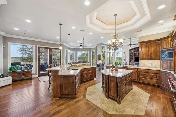 - Built-In Refrigerator, Dishwasher, Disposal, Double Oven, Gas Range, Microwave