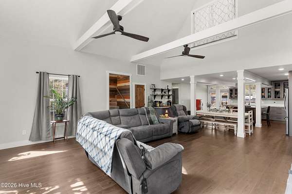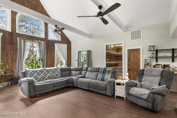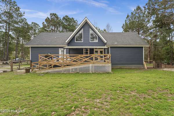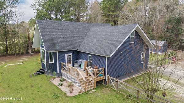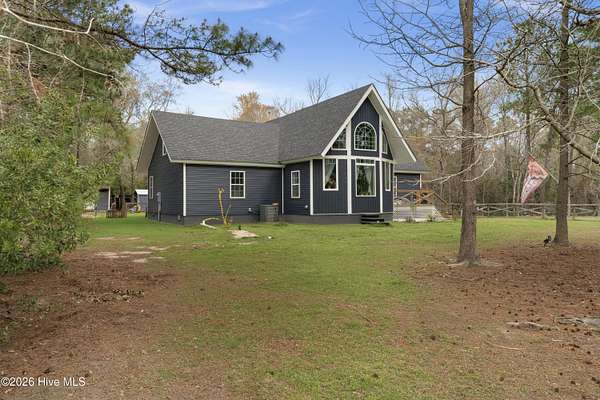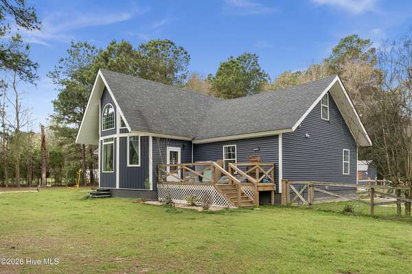 This stunning property, completed in December 2024, offers a perfect blend of modern luxury and country charm. Nestled on almost 8 acres of land, this 4-bedroom, 3-bathroom home is designed for comfortable living and entertaining. Located in a quiet and private neighborhood, it is just 4 minutes from town amenities and 30 minutes from the beach. The interior boasts a custom-built kitchen with stainless steel appliances and luxurious granite countertops, perfect for culinary enthusiasts. Enjoy the spaciousness of a split floor plan with an open great room accentuated by cathedral ceilings, ideal for gatherings and relaxation. The primary suite is a haven of tranquility with a walk-in closet and an oversized shower equipped with massage jets for a spa-like experience. This home is environmentally conscious, featuring energy-efficient elements such as spray foam insulation and remote-controlled ceiling fans in every room. Experience ultimate convenience with Bluetooth-enabled bathrooms, allowing you to enjoy music while relaxing in rolled showers. LVP flooring downstairs and new carpet throughout the upstairs ensure both style and comfort. For outdoor enjoyment, whether you prefer the sunlit front deck or the privacy of the covered back deck, relaxation is at your fingertips. The property includes two outdoor buildings, offering ample storage or potential for creative spaces. An encapsulated crawl space and a well cleaned in 2025, equipped with two filtration systems and an 80-gallon pressure tank, enhance the property's functionality and sustainability. Despite its proximity to town, the property provides a serene country living experience with features like a chicken coop and vast open spaces. This home seamlessly combines comfort, luxury, and practicality, offering a beautiful and inviting space for its future owners. With its modern amenities and charming rural setting, it truly is a dream home for those seeking the best of both worlds.