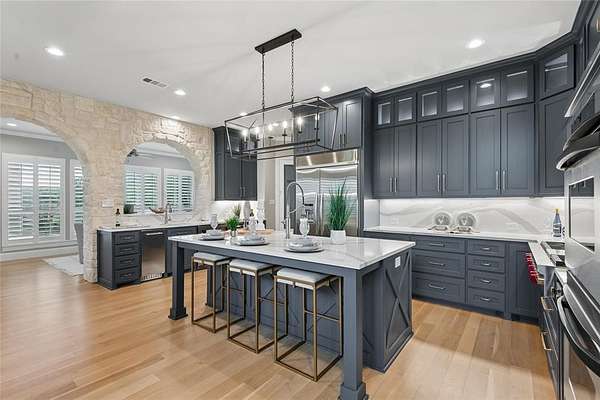 - Built-In Wine Cooler, Cathedral Ceiling(s), Chandelier, Decorative Lighting, Flat Screen Wiring, High Speed Internet Available, Kitchen Island, Open Floorplan, Second Primary Bedroom, Vaulted Ceiling(s), Walk-In Closet(s)