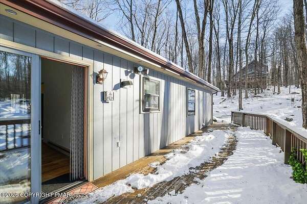 Located in the highly sought-after Big Bass Lake community, this 3 bedroom, 2 full bath home sits on a rare and expansive 1.72 acre wooded lot, offering exceptional privacy rarely found within the community. Set among mature trees, the property provides a peaceful, secluded setting while still enjoying access to Big Bass Lake's top tier, amenities. Inside, high ceilings and a spacious floorplan create a bright, open feel throughout. The home features a formal dining room ideal for entertaining, a large kitchen with ample cabinetry and workspace, and generous living areas designed for comfort and functionality. Recent updates include a new roof, skylights, and Generator. Well sized bedrooms and two full baths offer flexibility for full-time living, weekend use, or hosting guests. This unique property combines privacy, space, and resort style living in one of the Poconos' most desirable communities. Enjoy lakes, pools, clubhouse amenities, and year-round recreation all while coming home to your own private wooded retreat.