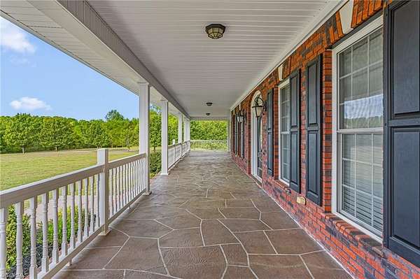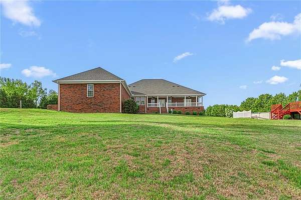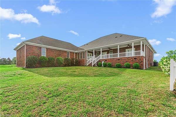 Beautiful custom-built brick home offering one-level living on a private 3.6 acre setting. This thoughtfully designed home features 3 bedrooms, each with its own full bathroom, including two spacious primary suites complete with tile showers, jetted tubs, and walk-in closets. The living room showcases built-in shelves, cabinetry and a gas log fireplace. The kitchen is well appointed with granite countertops, an island, stainless steel appliances, cherry cabinets, and a pantry. Additional highlights include a bonus room, sunroom/office space, and a huge laundry room. Enjoy outdoor living from the full-length covered front porch with stamped concrete or the covered concrete back deck. The property also features an above-ground pool with a large deck, oversized 3-car garage, attic storage, and a new roof. Conveniently located with easy access to Hwy 109 and Business 85, all while benefiting from county taxes. A rare combination of space, privacy, and quality craftsmanship.