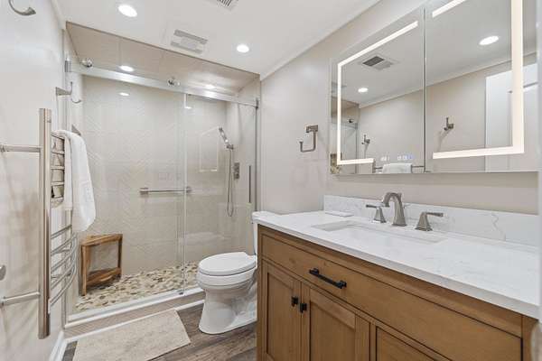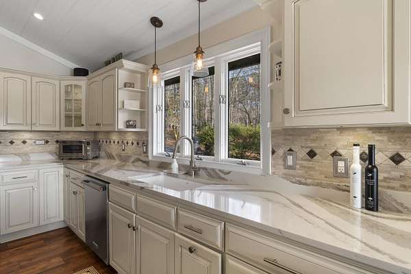 - Lake Views, Primary On Main, Quartz, Smoke Detector, Stainless, Window Treatments