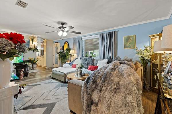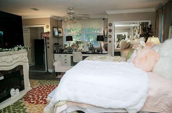 Inside, the home features upgraded appliances, modern bathrooms, and new flooring throughout. Elegant touches like the beautiful wood-burning fireplace, custom ceiling designs, and sophisticated wall decor make every space feel warm and inviting.