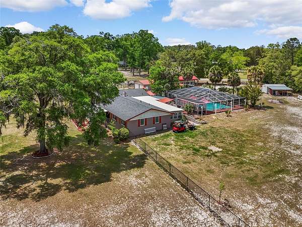 Outdoors, you'll find endless opportunities to unwind or entertain. Take a dip in the huge Olympic-size screened-in pool, enjoy coffee on the expansive front porch, or relax on the side and back porches while watching the breathtaking sunsets and local wildlife beneath the shade of majestic oak trees. The property also includes a carport and garage, plus an RV hookup and a pool house with a shower for added convenience.