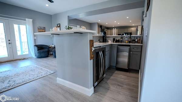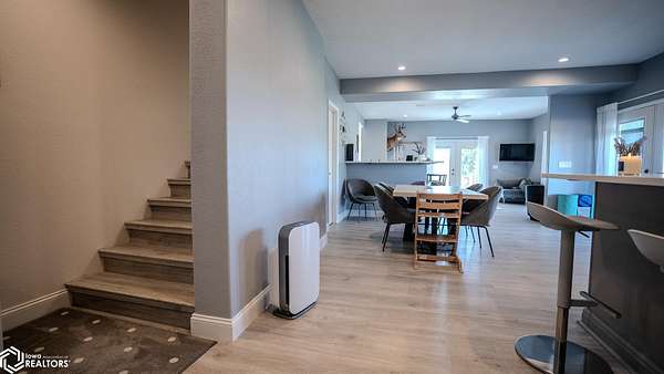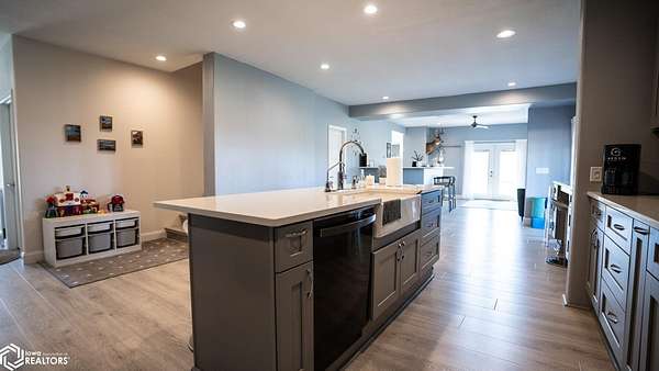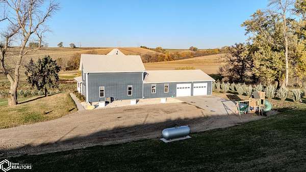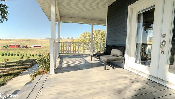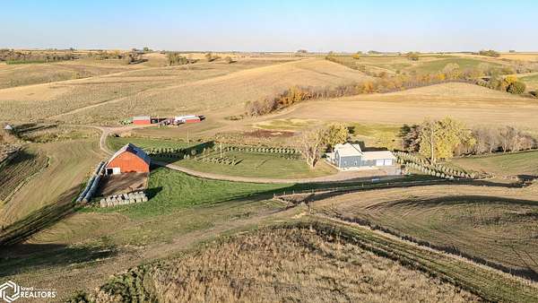 Welcome to a truly special opportunity to own a beautifully renovated modern farmhouse set on a private hillside just minutes from Denison. Originally built in 1908 and fully renovated in 2019, this 4-bedroom, 2-bath farmhouse perfectly blends historic character with modern design. The home features an open floor plan ideal for everyday living and entertaining. Matching quartz countertops flow throughout the home, and the large kitchen, complete with a gas range cooktop, is a chef's delight. Four sets of French doors bring abundant natural light inside and provide seamless access to outdoor living spaces, making it perfect for enjoying the wraparound porch and those gorgeous sunsets. The great room includes a full bar for hosting family and friends, and the home-wide wired sound system lets you enjoy music both indoors and outdoors. In addition to all these wonderful features, this property offers the flexibility to expand. If you wish, you can purchase additional land and outbuildings, making it perfect for raising a variety of farm animals or starting your own hobby farm. Adjacent 135.6+/- acres (35+/- ac tillable currently, and 80ac are contracted within the USDA CRP program until fall 2027) including equestrian stables and machine sheds are also available for purchase. Seller will also consider financing pre-approved buyer. AMA