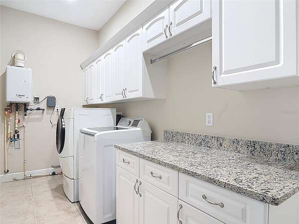 A 1-bed, 1-bath guest apartment with a full kitchen and private entrance is perfect for in-laws or rental income. Outdoors, enjoy a screened-in pool deck, an outdoor shower, and a fenced backyard with fruit trees. The home is powered by a Generac whole-house generator (2022) with a 500-gallon propane tank and features a solar-heated pool (2023). Additional highlights include a huge walk-in pantry, temperature-controlled storage/safe room, motorized attic life in garage and custom closet organization throughout. (Gas is LP not natural).