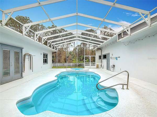 NO HOA! This exceptional estate sits on 2.8 private acres with a courtyard-style pool lanai backing up to a serene wooded area--no flooding, no flood insurance required! Over $200K in recent upgrades make this home a must-see, including a brand-new roof (2024) with wind mitigation certification for lower insurance costs.