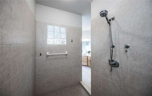 In the north wing, you will find a primary suite featuring a large walk-in shower, a soaking tub, and multiple closets. This wing also houses a third bedroom currently used as an office, as well as a spare bedroom with a private, updated three-quarter bathroom.