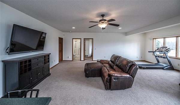 Attached you'll find the three-car heated garage and a highly functional 50 x 80 pole shed. The shed contains a finished 23 x 24 office with a half bath, a front shop/wash bay, and heated rear area with a full mezzanine. Additionally, a full home and shop generator is included to ensure uninterrupted power.