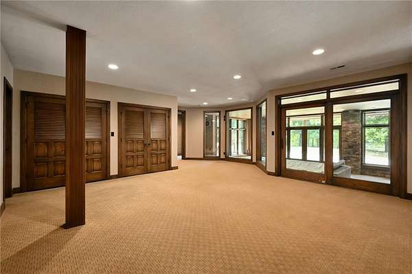 One-of-a-kind gated estate on 21 dreamy acres (4 parcels)! No HOA, tucked into a quiet neighborhood of mature trees and estate lots. This property is packed with luxurious amenities: heated saltwater outdoor pool (deep enough to dive), pool house cabana with WiFi, 117-yard golf hole, trails, volleyball, basketball, firepits and a 2+ acre stocked pond! The main home offers approx. 7,000 sq ft with 2 true primary suites upstairs, a 3rd bedroom in the finished lower level, and a 4th bedroom overlooking the flex room, and attached HVAC temperature controlled 6-car tandem garage with epoxy floors. Even more space is found in the charming two-bedroom carriage/guest house accessory the driveway with a 2 car garage. The Kitchen has brand new, high-end appliances, walk-in pantry with custom pull out storage, kitchen water filtration, two additional dishwasher drawers, and walks out to an oversized composite deck. The lower level has a bar for entertaining, fantastic theater room, a flex room with the indoor exercise pool that walks out to a covered porch. The home overflows with upgrades such as wide plank real wood floors with flush mount vents, whole house water softener, luxury trim work, Hunter Douglas blinds, steam showers, two laundry rooms, sliding screens at multiple screen doors, new exterior paint 2024, and more! This is more than a home -- it's a property designed for entertaining, relaxing, and enjoying the great outdoors! Enjoy a lifestyle and privacy views that can't be duplicated, all in a lovely neighborhood! There was once an additional bedroom in the main home that can be converted back for a 5th bedroom.