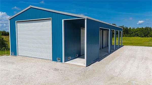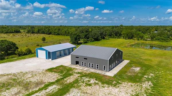 Set behind a gated entrance, the unfinished barndominium is 60'x80' and is thoughtfully designed with a 10-foot wraparound porch-perfect for soaking in the peaceful views of your private pond and scattered oaks. The interior is a blank canvas, ready for Buyer to finish and add your personal layout and finishing touches. With electric and well already in place, much of the heavy lifting is done. Need extra space? A seperate 30x70 detached building with multiple roll-up doors and an 8'x70' covered overhang offers storage for RVs, boats, equipment, or whatever your lifestyle demands. The property is fenced, with open pasture and beautiful perimeter trees-ideal for animals, family play, or simply enjoying the wide-open space. Zoned for Residential Mixed Use, this is your opportunity to build the life you want. Plans are attached. Tucked between Hwy 70 and Hwy 72, you're just minutes from Arcadia and within easy reach of Port Charlotte, Sarasota, and Bradenton-rural charm without sacrificing convenience. If you've been searching for flexibility, freedom, and a property with potential already in motion-this is it.