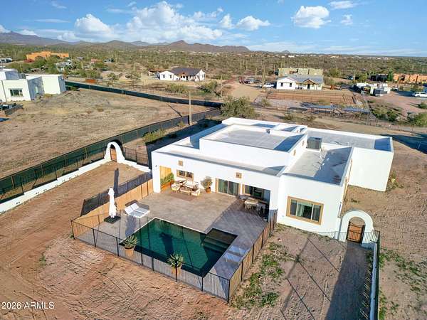 Experience wide-open desert living in this beautiful custom home situated on a 1.82-acre horse property with breathtaking mountain and sunset views in Morristown. Enjoy peace, privacy, and endless space - NO HOA and room to truly make the property your own, while still being conveniently located just 20 minutes from Surprise, approximately 25 minutes from Lake Pleasant, and only about 10 minutes to the charming town of Wickenburg-offering an easy drive to shopping, dining, recreation, and everyday conveniences. Step into your own private backyard retreat featuring a beautiful pool and a covered back patio, perfect for relaxing, entertaining, or unwinding after a long day while taking in the serene desert and mountain views. The covered deck creates an ideal space for outdoor dining, lounging, and enjoying Arizona's incredible sunsets year-round. Inside, the home offers a thoughtfully designed layout with spacious living areas, ideal for both everyday living and hosting family or guests. Outside, the expansive lot provides plenty of room for horses, RVs, trailers, workshops, or future additions, offering flexibility rarely foundcombining country living with a short, convenient drive to the city.