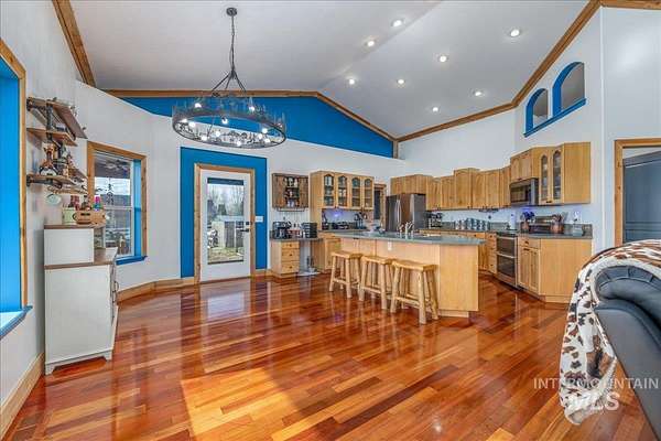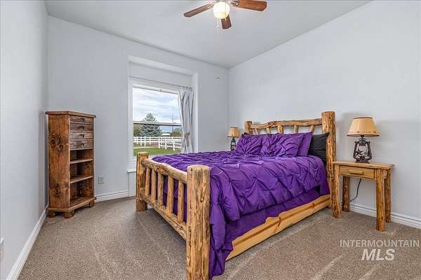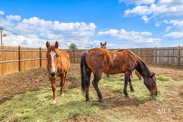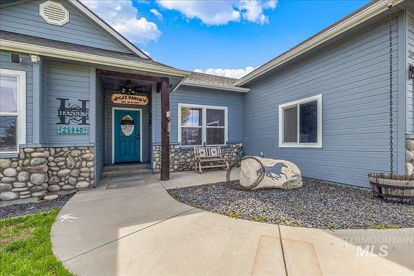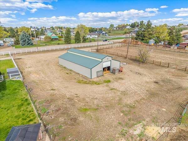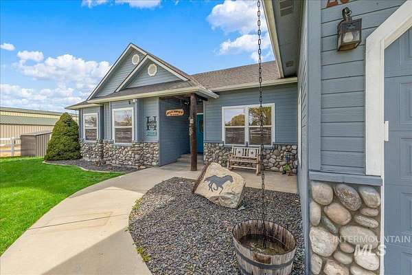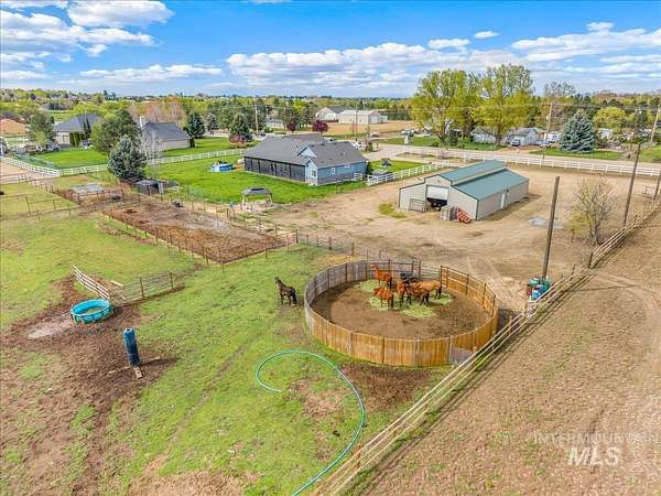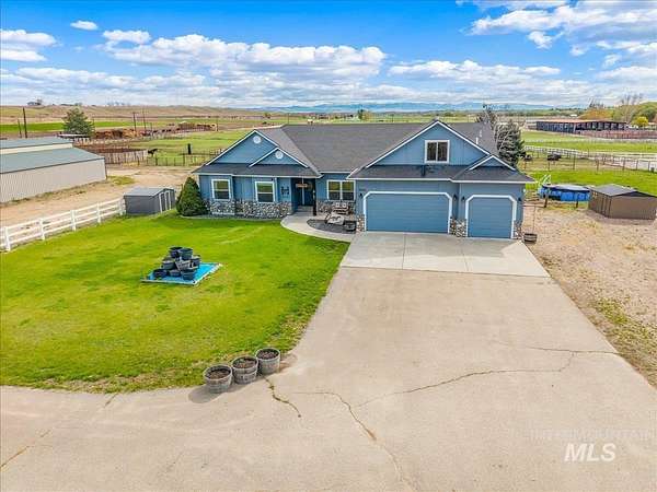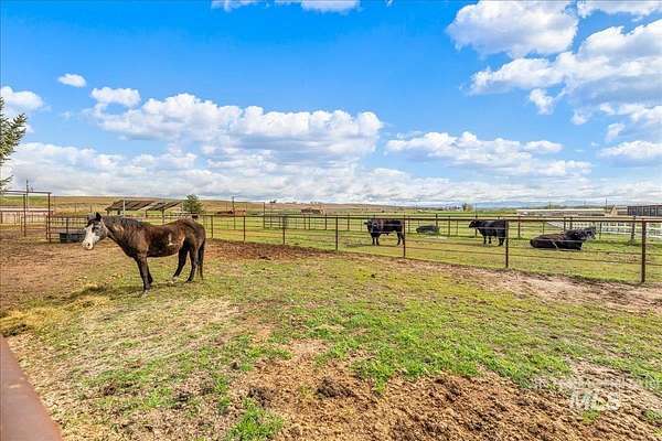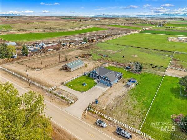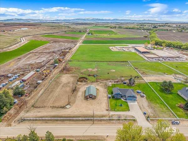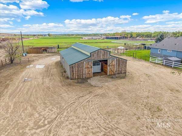 Set on 5 fully fenced acres in the Middleton countryside, this exceptional horse property delivers the perfect blend of function, comfort & breathtaking views. With unobstructed sightlines to Bogus Basin & peaceful pasture surroundings, the setting is as inspiring as it is practical. The beautifully designed custom home offers 4 beds, 3 baths & flexible generational living, featuring a main-level master suite, two additional bedrooms, two baths & a dedicated office, while upstairs provides a private bedroom, full bath & bonus room retreat. Inside, warm cherry floors, rich hickory cabinetry & a spacious great room create an inviting atmosphere anchored by a cozy rock fireplace. Thoughtful upgrades include a high-efficiency dual-zone furnace, tankless water heater, whole house filtration system & more. The expansive east-facing covered patio-complete with 220V power-offers the perfect place to unwind, dine & take in the sunrise over your grazing horses. Equestrian amenities are equally impressive, including a 30'x60' nine-stall barn, lighted riding arena, round pen, irrigated pasture & fully fenced yard. A charming fire pit complete the expansive outdoor experience, creating a property that's equally suited for work, play & relaxation. Truly a rare opportunity to own a turnkey horse property with room to live, grow & enjoy the best of country living. Available to view 4/18.