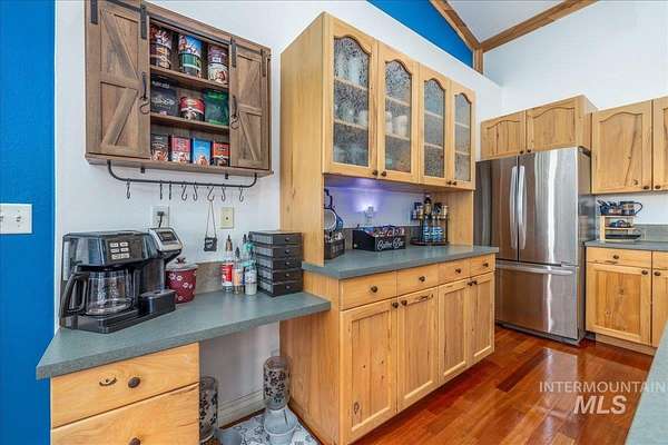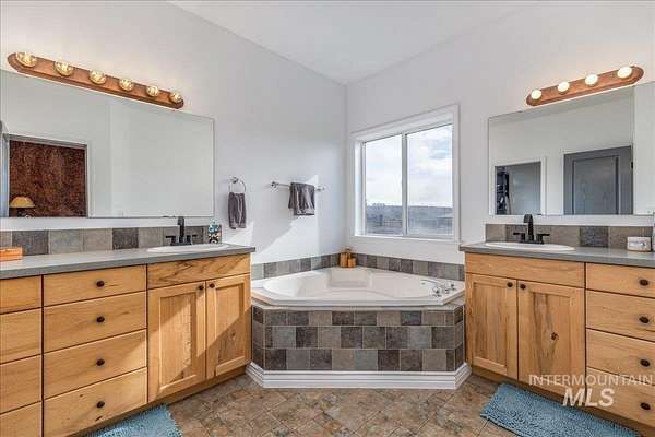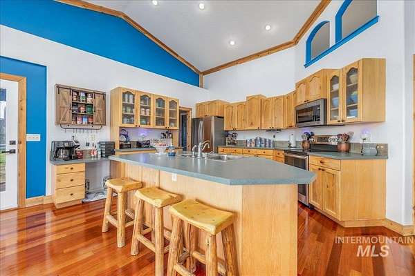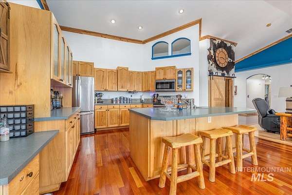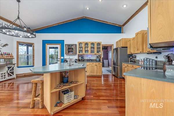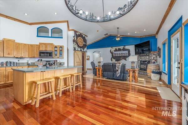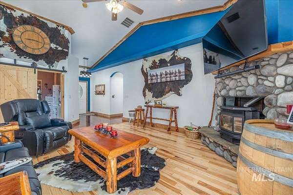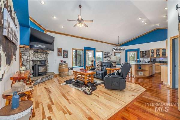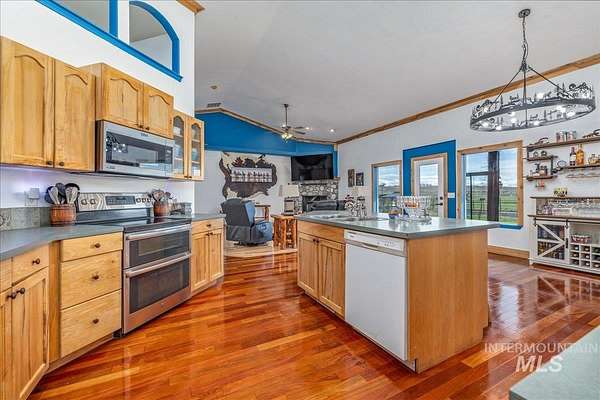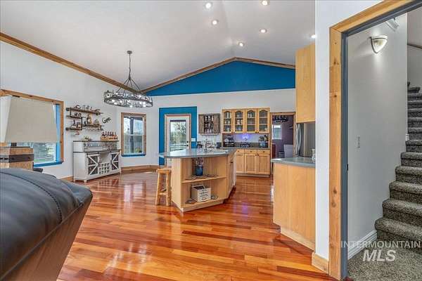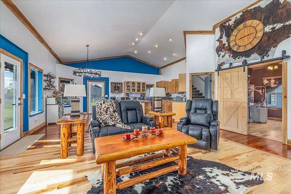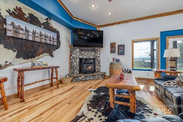 Set on 5 fully fenced acres in the Middleton countryside, this exceptional horse property delivers the perfect blend of function, comfort & breathtaking views. With unobstructed sightlines to Bogus Basin & peaceful pasture surroundings, the setting is as inspiring as it is practical. The beautifully designed custom home offers 4 beds, 3 baths & flexible generational living, featuring a main-level master suite, two additional bedrooms, two baths & a dedicated office, while upstairs provides a private bedroom, full bath & bonus room retreat. Inside, warm cherry floors, rich hickory cabinetry & a spacious great room create an inviting atmosphere anchored by a cozy rock fireplace. Thoughtful upgrades include a high-efficiency dual-zone furnace, tankless water heater, whole house filtration system & more. The expansive east-facing covered patio-complete with 220V power-offers the perfect place to unwind, dine & take in the sunrise over your grazing horses. Equestrian amenities are equally impressive, including a 30'x60' nine-stall barn, lighted riding arena, round pen, irrigated pasture & fully fenced yard. A charming fire pit complete the expansive outdoor experience, creating a property that's equally suited for work, play & relaxation. Truly a rare opportunity to own a turnkey horse property with room to live, grow & enjoy the best of country living. Available to view 4/18.