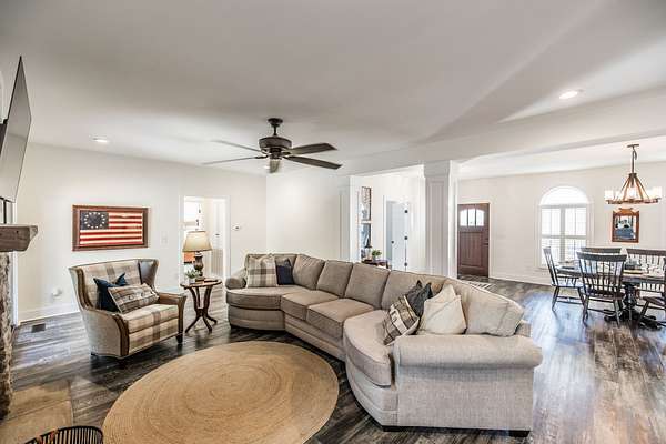 Nestled on just under 3 private acres surrounded by mature trees, this stunning 4-bedroom, 3.5-bath home offers the perfect balance of modern comfort and peaceful country living. A classic rocking chair front porch welcomes you inside, where an open floor plan and bright, airy spaces make this home ideal for both everyday living and entertaining. The renovated gourmet kitchen is the heart of the home--featuring crisp white cabinetry, quartz countertops, stainless appliances, and a large island that invites family and friends to gather. The kitchen flows seamlessly into the spacious living and dining areas, offering an easy connection to the outdoor spaces. The main-level primary suite provides convenience and privacy, featuring a generous walk-in closet and a fully renovated, spa-like bathroom with elegant finishes. Also located on the main floor are a home office, powder room, and utility room--everything needed for true one-level living. Upstairs, you'll find three additional bedrooms, two full bathrooms, a large bonus room perfect for recreation or movie nights, and a conditioned storage area offering incredible flexibility and organization options. Step outside to your private backyard oasis. The inground pool is surrounded by a beautiful natural setting, offering the perfect escape for relaxing or entertaining. With plenty of open space and mature trees providing shade and privacy, this property feels like a retreat every day of the week. Located in the highly sought-after Beech school zone, this home combines the charm of peaceful living with the convenience of nearby amenities. Thoughtfully updated, move-in ready, and set on a picturesque lot--this rare find has everything you've been looking for
