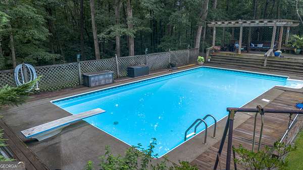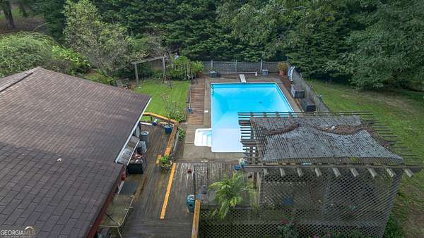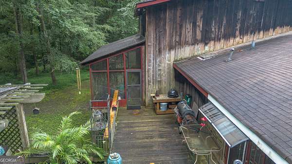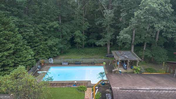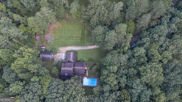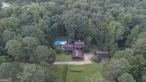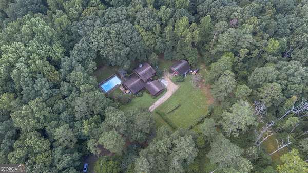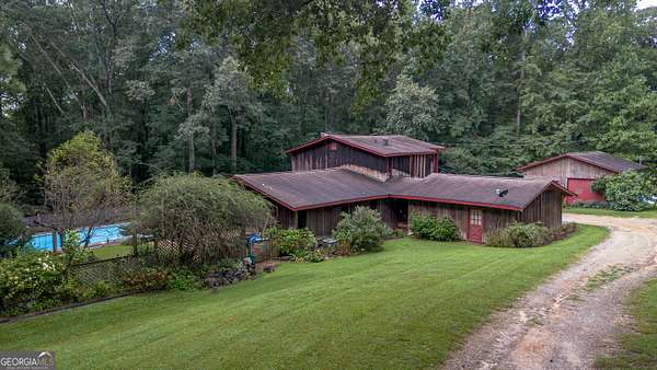 Rustic Country Home on 8+ Acres with Natural Views. Welcome to your private oasis! Nestled on over 8 acres of beautifully landscaped grounds, this rustic country home offers a perfect blend of tranquility and modern comforts. With breathtaking expansive views of lush natural woods, a serene creek, and abundant wildlife, you'll feel a world away while still enjoying convenient access to nearby amenities. This inviting 3-bedroom, 2-bath residence features a spacious primary suite complete with an en suite bathroom that boasts a jetted garden tub and French doors leading out to the back deck. The heart of the home is the Great Room, highlighted by soaring 20-foot ceilings, a stunning stone fireplace with gas logs, and built-ins that create a warm and inviting atmosphere. Step outside to your private paradise! Enjoy sunny days lounging by the impressive 20x40 saltwater pool with a durable vinyl liner, or unwind under the pergola with a hot tub that overlooks the pool area. For those who appreciate nature, a separate pergola harbors a Koi pond, providing a perfect spot for relaxation. The property also features a well-equipped woodworking shop/garage, complete with heating and air conditioning in the office area-ideal for hobbyists or those needing extra workspace. The full basement is partially finished, offering endless possibilities for additional living space or storage. Outdoor enthusiasts will appreciate the large fenced-in dog pen, making this home perfect for pet lovers. Additional highlights include a screened-in back porch, ideal for enjoying those warm summer evenings without pesky bugs. Don't miss this rare opportunity to own a slice of country paradise with all the comforts of home. Schedule your private showing today and experience the serenity this property has to offer! The possibilities are endless.
