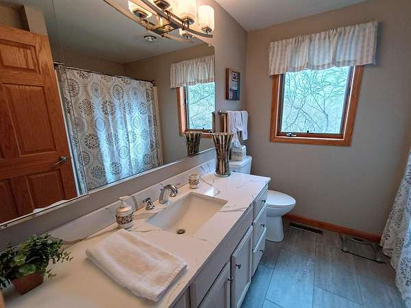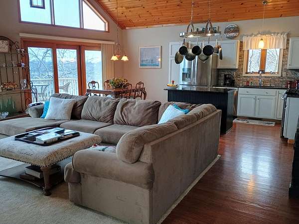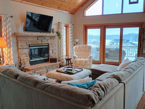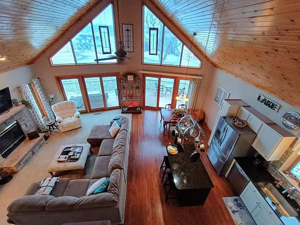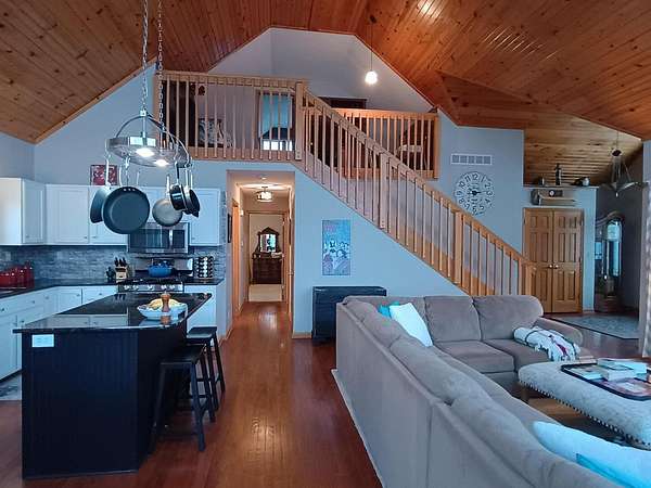 Waterfront! Beautiful Lake Carroll home with 4 bedrooms, 3 baths, including en suite bath off primary. Lots of updates including granite and quartz countertops, hardwood floors, vaulted great room, southern exposure with lots of natural light, lovely lake view, stainless steel appliances including French door fridge, woodburning fireplace with gas starter and extra deep garage that fits our 2006 Bennington pontoon. Did I mention that the pontoon, dock and shore station are included with the house!? A little over 2 acres so lots of privacy, cart path to our pier, natural gas, reverse osmosis system, walkout lower level with brand new bedroom and bath and unique log cabin type "man-cave." Come see all that this home and Lake Carroll provide!