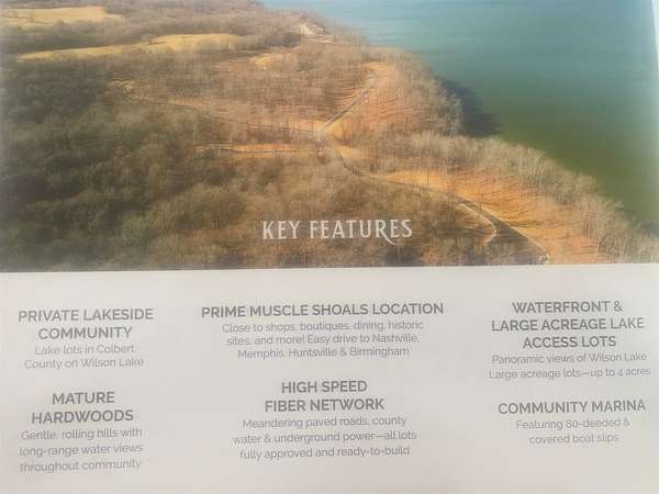 Est $2,452/moBeautiful main Lake waterfront building lot with deeded boat slip. Enjoy nature from your home that offers breathtaking main Wilson Lake view with a scenic view of Wheeler Dam. Enchanting new waterfront development with underground utilities, county water and high-speed fiber internet. An added plus is a community marina featuring deeded and covered boat slips. HOA fees are $1, 500.per year and $2,000. with boat slip. Build your forever home today! Price includes deeded boatslip.