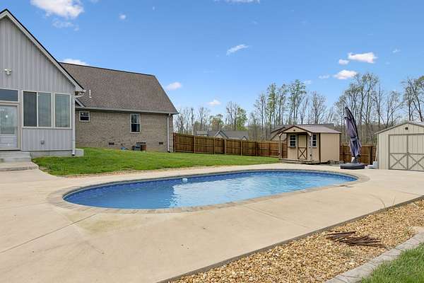 This property offers the perfect blend of comfort, style, and functionality with a beautifully designed outdoor space featuring a fenced-in, in-ground pool installed in 2022, ideal for relaxing or entertaining. Enjoy year-round views from the stunning sunroom or step out onto the spacious back deck overlooking the pool. The home is thoughtfully updated with granite countertops throughout, adding a touch of elegance to every space. Additional features include Amish-built sheds with electricity that convey, providing excellent storage or workspace options. The gated driveway with an electric gate offers added privacy and security, and the home is equipped with an AT&T surveillance system (equipment fully paid for), with flexible month-to-month service.