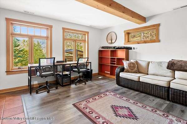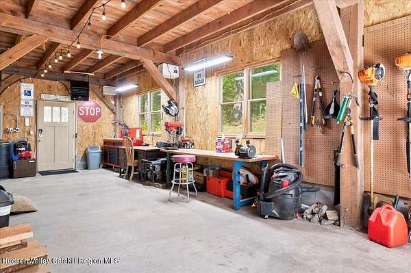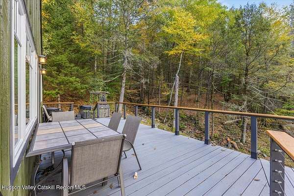 Breathtaking mountain views set the stage at 26 Carle Rd in Mount Tremper, a custom 3-story Contemporary that truly reflects the spirit of the Catskills. With 3 bedrooms, 2 baths, and an open floor plan, the home offers both comfort and serenity. The centerpiece is a dramatic stone fireplace with a wood-burning insert, its chimney running through all three levels and filling the home with warmth and character. Details like a third-floor sleeping nook and exposed wood beams add charm and bring the outdoors inside. Outside, more than 4 private acres on 2 deeds invite you to slow down. Two large decks frame the views, a heated stone walkway leads to the hot tub for evenings under the stars, and a seasonal stream runs quietly nearby. An older barn adds rustic appeal and function, while a two-story Amish barn with heat and electricity offers endless options-an artist's studio, woodworking shop, or creative retreat. A whole-house generator and updated heating system add peace of mind. Here, every detail brings you closer to nature, peace, and quiet. And when you're ready to explore, Woodstock, Kingston, and Phoenicia are just minutes away, with hiking, skiing, fly fishing, live music, and the Catskills culture that has kept generations coming back.