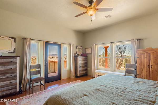 Welcome to this thoughtfully designed equestrian property on 20 acres of high desert grass land at 5000 ft elevation in Sonoita Arizona! This property is fenced and cross fenced, 100x160 arena, 50ft round pen, custom wood barn that is finished with board and battened cedar that features four stalls w/ Dutch stall doors, wash rack (currently enclosed as a tack room), providing a safe equine environment. Above the barn is a 1200 Sq Ft apartment with two beds and one bath, vaulted ceilings, huge deck and upgrades throughout. The main house is a custom home with 2000 sq ft of comfortable living space, upgrades and more upgrades, full wrap around porch, to enjoy the panoramic views, indoor outdoor areas, metal roof, new exterior paint 2025, 1100 detached garage w/ bonus work shop and more!!! Priced below appraised value. This property combines outstanding equestrian facilities along with the inviting living spaces and ample storage, making it an excellent choice for those seeking both comfort and a horse friendly environment.