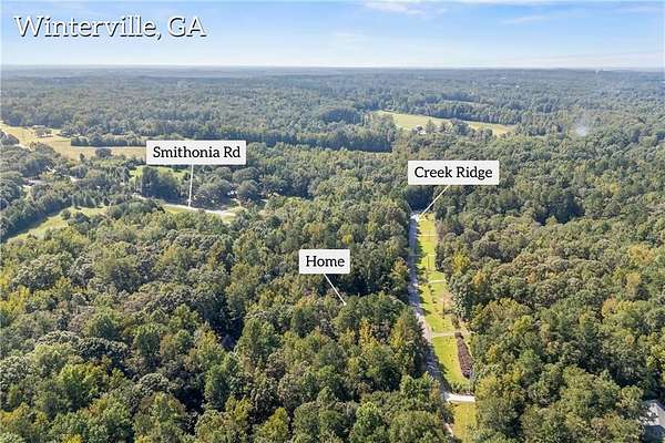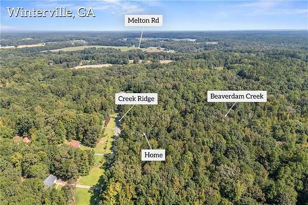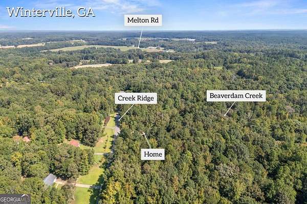 From Lexington Rd, heading towards Oglethorpe County, turn Left onto Cherokee Rd at Lowes intersection, continue on Cherokee until you reach the redlight in Winterville. Turn Right at redlight, Creek Ridge will be on your left about 2-3 miles down, home on Right, see sign.
