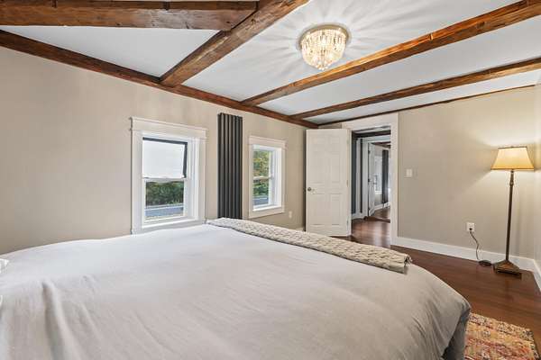 CONTRACTOR SPECIAL - Meticulously Restored 2 BR, 2.5 Bath Colonial in a Serene Country Setting. This timeless home has been tastefully restored and modernized from 2018-2025, blending historic charm with enduring quality. The home boasts a thoughtful multi-phase rehabilitation including new framing, insulation, wiring, service panel, heating/plumbing, and finishes, all while preserving the character of exposed beams & traditional design that is balanced with modern convenience. Interior highlights include: Two sizeable bedroom suites with raised-beam ceilings, each having a private, luxurious full bath. Rebuilt stairwell with extended footprint, and desirable custom trim throughout the home. Attractive living room with new brick accent wall. A new, nearly-complete kitchen with half bath & laundry area added (2023-2025) offering gorgeous lighting, custom center island, concrete counters, built-in cabinetry, dining area and updated windows. The original vintage kitchen is fully functional and provides generous cabinet & counter space along with a pantry and laundry area. Additional improvements include Full Exterior Rebuild: New vinyl siding, metal roof, fascia, trim, and front entry pop-out. Concrete footings and slab reinforcement with rebar tied into granite foundations. New windows, doors, and proper drainage system with foam insulation. Large concrete patio (2024-2025) with integrated gutter and river rock accents. Barn Improvements: Reinforced foundation and footings. New siding and floor joists. Two insulated rooms in attic with Wi-Fi-enabled attic fan. This impressive home offers the peace and privacy of country living with the amenities of the city just minutes away. For the golfer, nearby courses means you can be on the green in no time. Schedule your showing today! (See disclosures for a list of improvements/renovations and near-complete improvements)