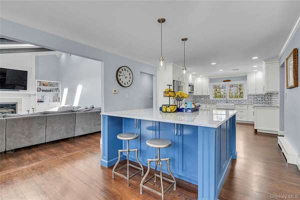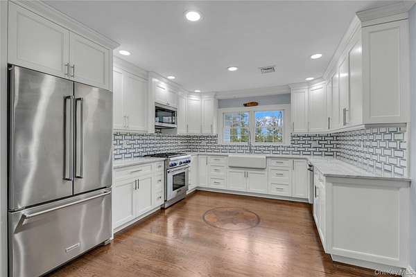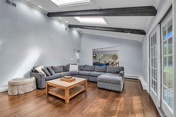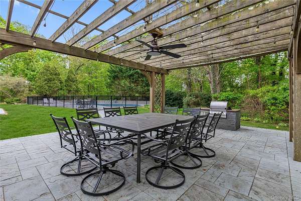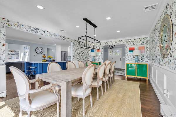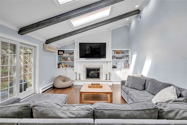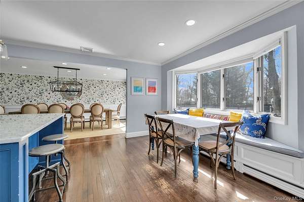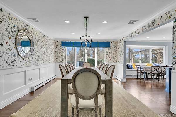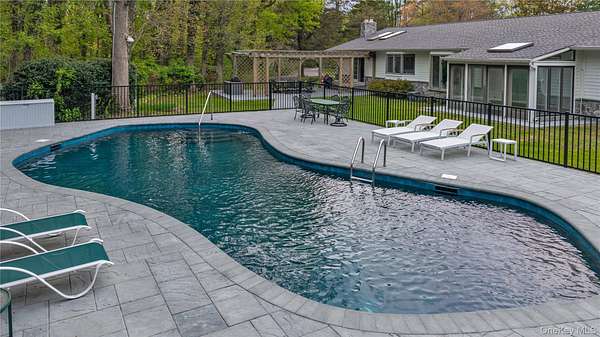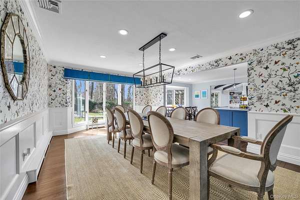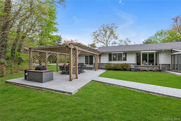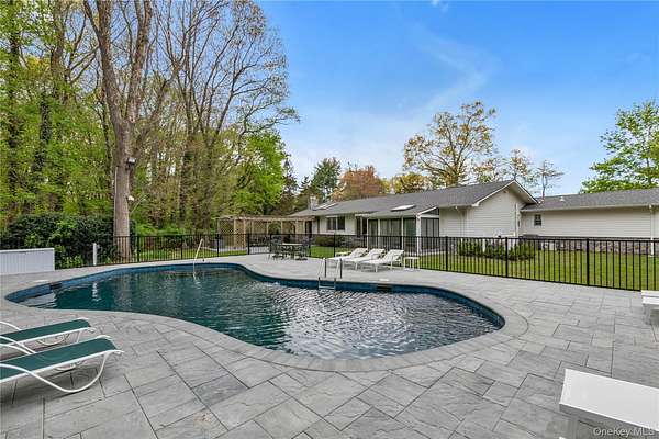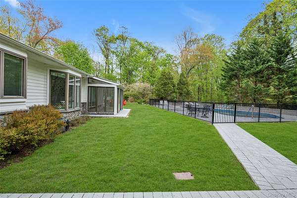 Extraordinary expanded ranch home at the end of a quiet cul-de-sac on 2.1 private acres in the Village of Old Brookville. Low taxes! Turn-key residence offering a bright, open layout with generously scaled principal rooms that flow with warmth and style upon entering the front door. Designer finishes with all work done in the last few years. The layout is ideal for every day living and entertaining featuring modern finishes. The elegant dining room with detailed millwork and richly appointed moldings includes custom Schumacher Wallpaper, making for a memorable experience at dinner parties. A stunning great room with vaulted ceilings, exposed beams, fireplace and built-ins serves as the centerpiece of the home adjacent to a breakfast area and refurbished white kitchen with blue island, marble countertops and updated appliances, gas cooking. The spacious primary bedroom suite is a true sanctuary with sliding doors to a private sun room, plus a spa-inspired en-suite primary bathroom featuring a radiant heat, oversized glass enclosed steam shower with rain head and multiple body sprays plus free standing soaking tub and double vanity. Three additional bedrooms on the main level and a hall bath are privately positioned and feature a playful charming window-lined reading nook providing the perfect space to relax and unwind. Bonus basement recreational space the full length and width of the house. Newly run natural gas heat. The serene backyard is complete with heated swimming pool, expansive patio, bbq area and multiple areas to enjoy the outdoors. Old Brookville is ideally located on the North Shore of Long Island, about 26 miles to Manhattan, and within a short distance to international airports. A few Long Island Rail Road options nearby. Amenities close by include golf and tennis clubs, equestrian centers, miles of shoreline for boaters, beaches, bicycle trails and world class shopping at Wheatley Plaza and Americana Manhasset. Live entertainment in Brookville at the Tilles Center too. The subject property is serviced by the the North Shore Public School District and Glen Head Elementary plus numerous private school options within close proximity. The address is a Glen Head zip code 11545 in the Village of Old Brookville. Be in this Spring/Summer and enjoy immediately!