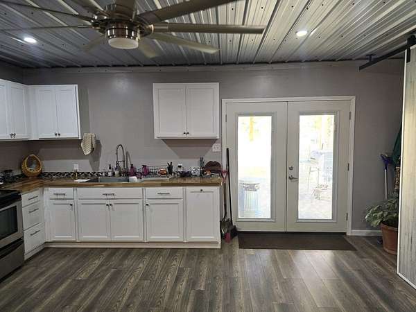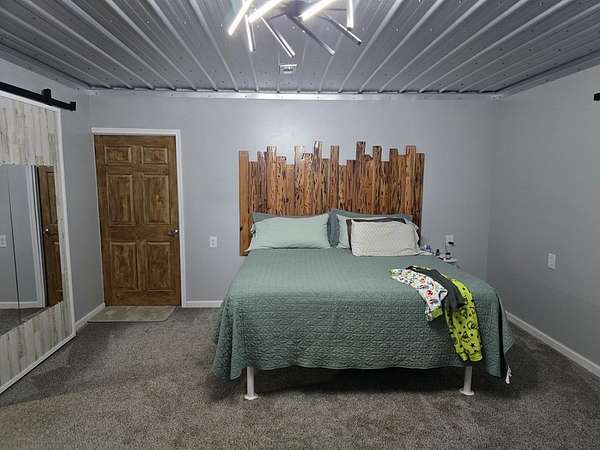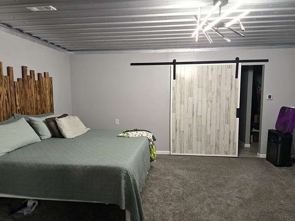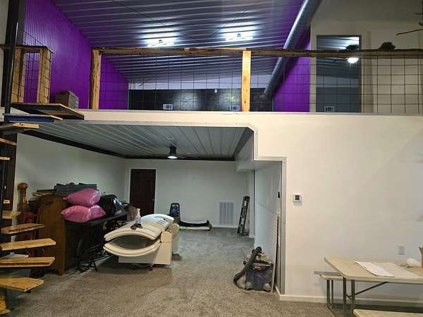 Calling all Outdoorsmen!! Check out this unique 2 story home nestled on 25 acres which has 2 stocked ponds and is a true unicorn!! This home has a crafted suspended plank spiral staircase leading to three rooms upstairs and a full bathroom. The decorative wood banister and tree help give this home a touch of charm. The downstairs features a sliding barn door entering the primary bedroom and one entering the bathroom as well, which has a tiled shower with an additional body sprayer. Spray foam insulation and a 4.5 ton HVAC will keep you comfortable year round. This paradise also includes corrugated metal ceilings and a deep well with a filtration system. Outside you will find a serene peaceful setting where relaxation is waiting. The large garage is fully insulated and has a spacious storage room and loft storage. RV hook-ups on site with 50 amp service.