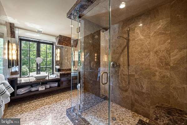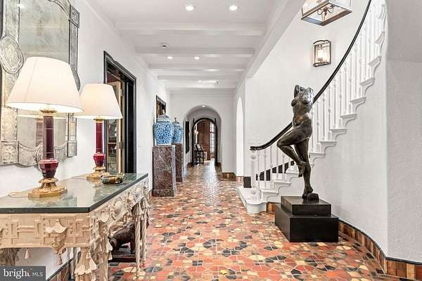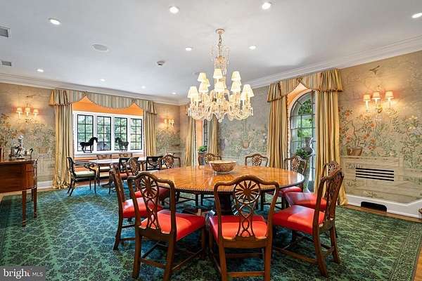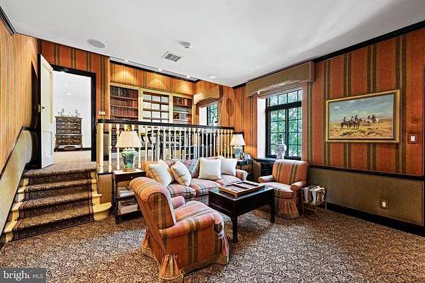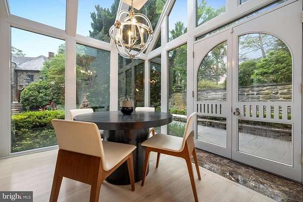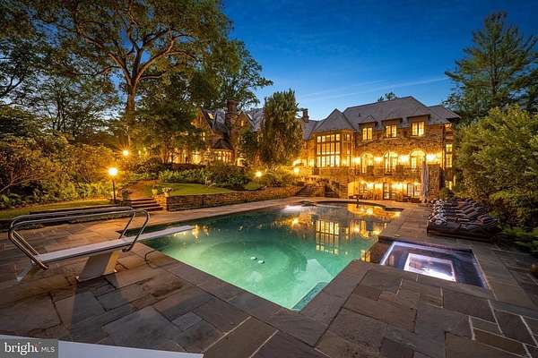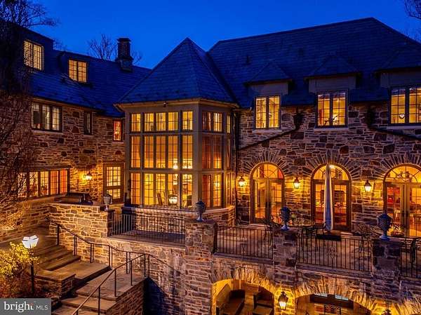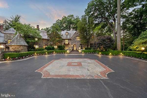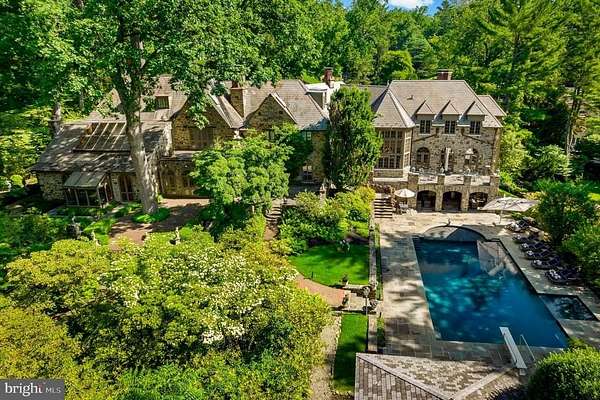 Following a successful tax appeal, the total annual taxes are $82,133 based on current millage rates.'Wooded Hill' is a significant Gladwyne estate privately set behind stone piers and entrance gates on nearly seven secluded acres of mature landscape and specimen plantings. A walled motor court, flagstone terraces, and formal garden areas introduce a 16,410 square foot main residence that has been carefully expanded and comprehensively renovated for modern living while preserving its original architectural character.The interior unfolds through a Mercer-tiled reception hall and central stair gallery, where arched passages and long sightlines connect the principal rooms. Detailed millwork, decorative ironwork, refined ceiling treatments, numerous French doors, and seven gas fireplaces are found throughout. Large windows on every elevation bring natural light into the home and frame views of the surrounding grounds.The main level is designed for both entertaining and daily use and includes formal living and dining rooms, a sunroom, billiards room, two family rooms, two private offices, and a gourmet kitchen with adjacent breakfast room at the center of the house.The primary suite occupies its own private wing and includes dual spa-style bathrooms, a sitting room, and a library balcony overlooking the two-story family room. Five additional bedroom suites each offer walk-in closets and private baths, and a second-floor library provides additional study or gathering space. In total, the residence offers eight bedrooms, including a fully self-contained two-bedroom apartment suitable for extended family, guests, or live-in staff.The daylight walk-out lower level is arranged for recreation and entertaining and features a custom bar, fitness room, theater with tiered seating, full bath, and direct access to the pool terrace and gardens.A separate two-bedroom guest house, accessed through a stone courtyard, has been renovated with contemporary finishes and provides privacy for long-term visitors.The grounds function as both formal landscape and recreational setting, with expansive lawns, a swimming pool and pavilion, multiple terraces, winding crushed-stone paths, and a private golf green with three tee boxes.Additional features include a Cummins 100kW whole-house generator and a Control4 system managing lighting, audio, security, and pool operation.Located minutes from Gladwyne Village, King of Prussia, Center City Philadelphia, and major commuting routes, the property offers a private estate setting with close access to regional amenities.