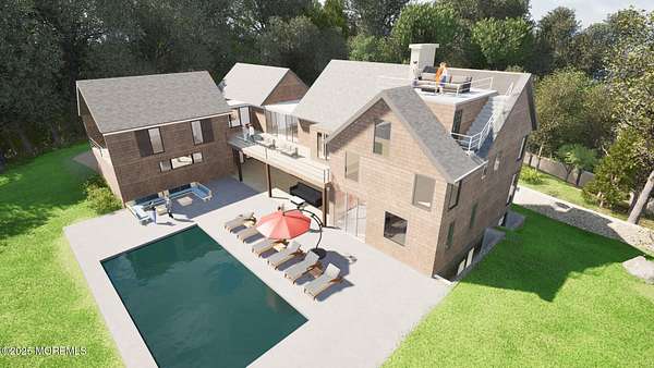 On top of the world - and in a world of your own.High above the coast in the exclusive enclave of Monmouth Hills, this 1.5-acre lot offers the ultimate in seclusion and sophistication. Backing up to more than 700 acres of Hartshorne Woods Park, it feels like a private estate, yet it's just minutes from ocean beaches, the high-speed ferry to NYC, and some of the Shore's top dining spots. Approved plans by architect Michael Monroe, AIA, feature a 4,839-sf Amagansett/Hamptons-inspired retreat-cedar shingles, airy decks, a gorgeous pool, and walls of glass framing lush woodlands and serene bay views. Build as designed or craft your own vision-either way, this hilltop haven defines coastal luxury. Perfect for the exacting client who wants it all. Located in Middletown NJ. Some photos enhanced.