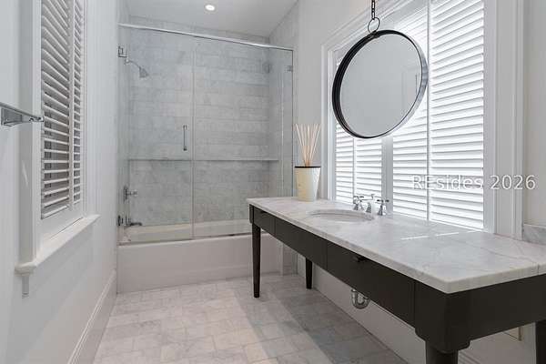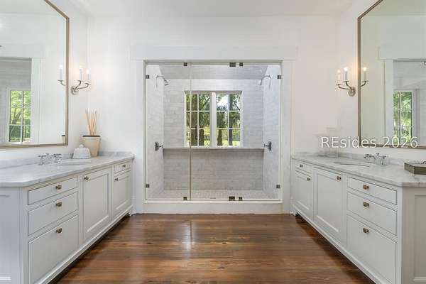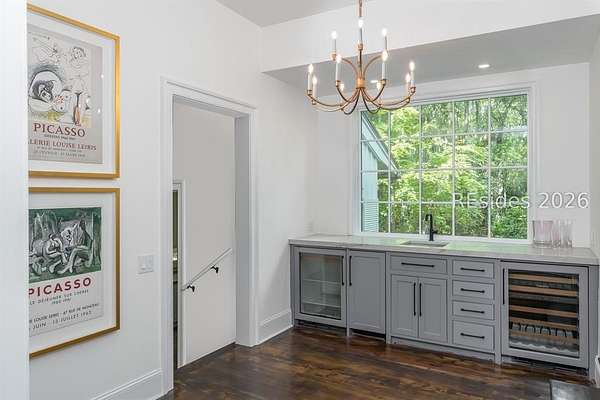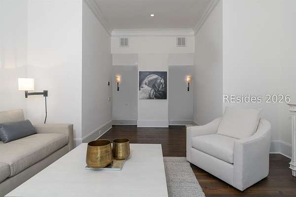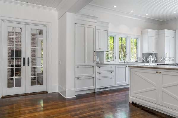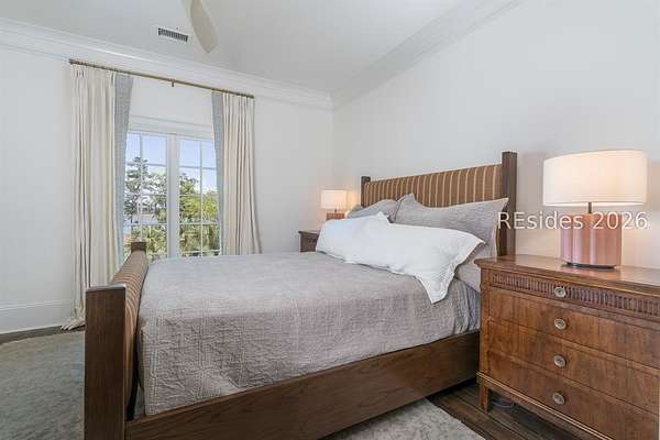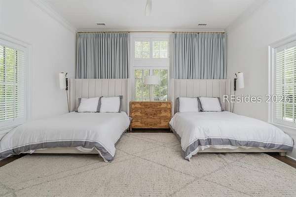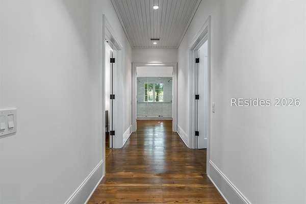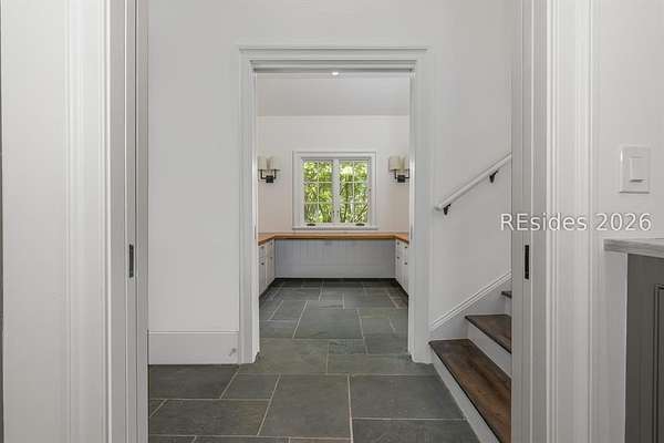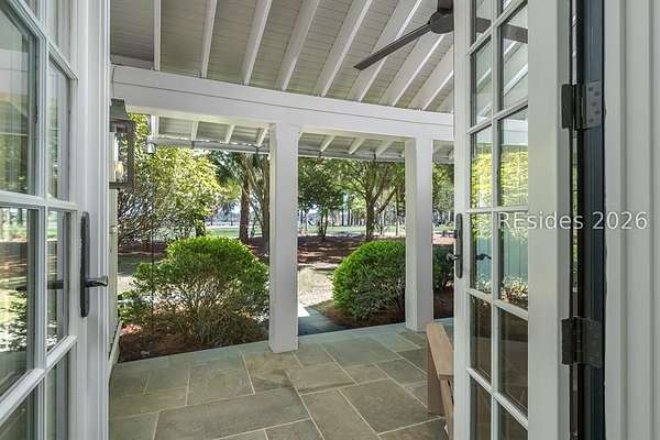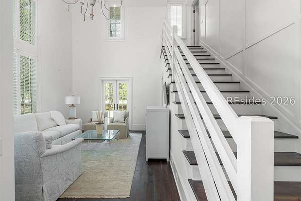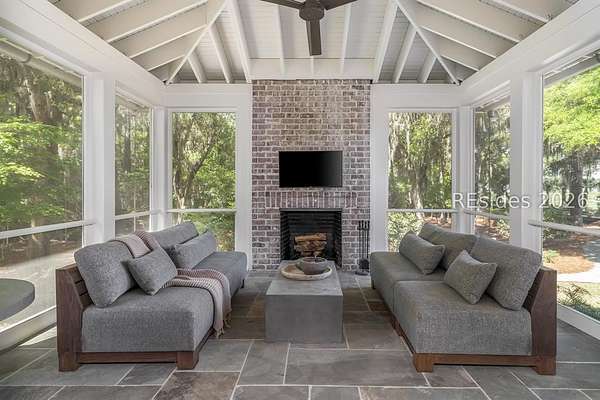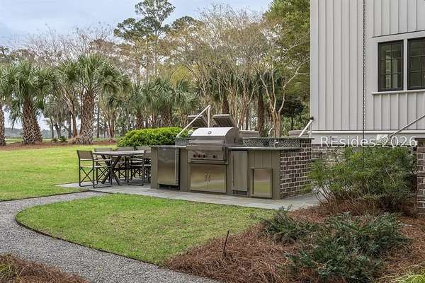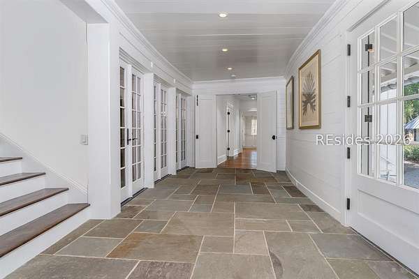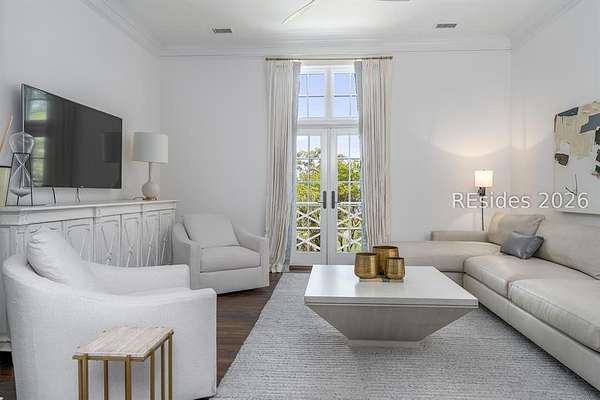 With its expansive acreage and private bridge approach, 26 Plum Thicket Road offers a rare sense of arrival and seclusion within Palmetto Bluff. Overlooking the iconic par-3 14th hole of the May River Golf Course, the home captures sweeping views from tee to green to the May River beyond, with the 13th hole framing the surrounding landscape. Designed by renowned architect Bobby McAlpine, the residence blends timeless Lowcountry architecture with refined craftsmanship. Pine floors with bluestone accents, custom built-ins, and intricate trim detail define the interiors, creating a home that is both elegant and inviting. Recently renovated, the property has been thoughtfully updated with a full interior and exterior repaint, new kitchen appliances including Wolf and Sub-Zero, custom lighting, and select structural enhancements. The 7-bedroom compound offers exceptional flexibility, with four bedrooms in the main residence, a two-bedroom guest house, and a private suite above the three-car garage. Indoor living spaces transition seamlessly to expansive outdoor areas, including a rear pool, grilling station, and screened porch-all positioned to take in the panoramic golf-to-river views. Offered fully furnished, this is a true legacy property-combining privacy, architectural pedigree, and one of the most coveted vantage points in Palmetto Bluff.