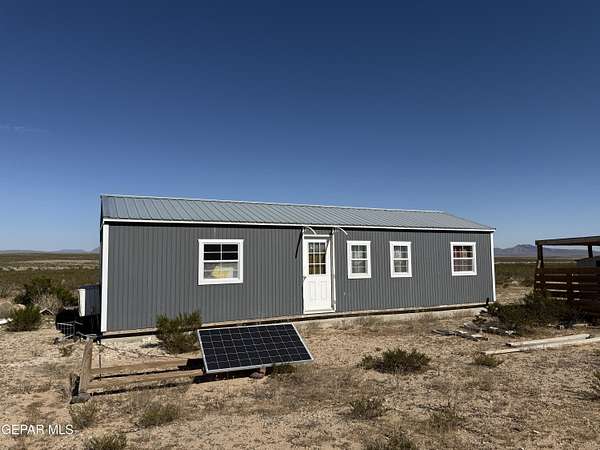 Est $454/moWelcome to this serene desert getaway - this home is set on 20 acres and was built with extreme care & attention to details. All you need to live off the grid away from the hustle & bustle - Solar panels with wifi controlled battery & inverter, Propane gas, Water Tanks & more. Home has metal roof. A mini split heats and cools the space efficiently. 1 bedroom & 3/4 bathroom plus a spacious & open dining/living room and kitchen. It's a quick 2 mile drive to Highway 62/180 & close to Cornudas Cafe - It's only a 1 hour from El Paso. Cell service also works in this area! No zoning or restrictions - enjoy the freedom in West Texas on this beautiful property.