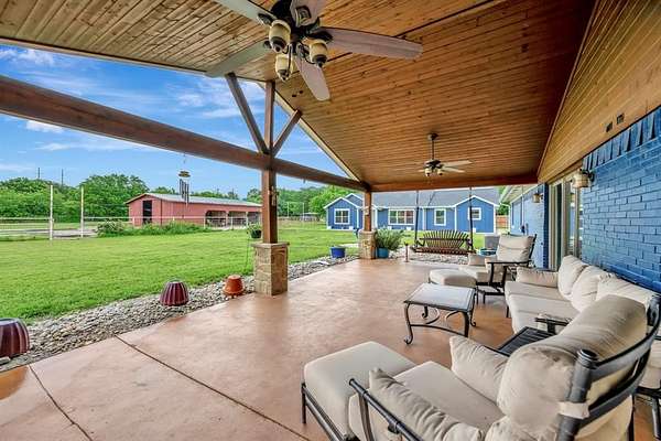 Discover a rare opportunity offering flexibility, income potential, and room to grow in a desirable Keller location. Situated in an unincorporated area, this property allows for commercial use, up to five outbuildings, and the benefit of lower taxes, making it ideal for business owners, multi generational living, or those seeking space without restrictions. Inside the main house, the thoughtfully designed kitchen is a chef’s dream with granite countertops, a gas cooktop with vent exhaust, double ovens, a wine rack, and a spacious butler’s pantry large enough to accommodate a second refrigerator. The kitchen opens seamlessly to a stunning floor to ceiling brick, wood burning fireplace that anchors the living area with warmth and character. The flexible floorplan includes a large flex space ideal for a home office, workspace, or additional living area. The primary suite is designed for comfort and function, featuring separate his and hers closets, a Hollywood bath with dual vanities, and a walk in shower. Outdoors, the property continues to impress with a barn and stable that includes a built in workshop, offering endless possibilities for hobbies, storage, or business use. One of the standout features is the second home finished in 2022, a well appointed 3 bedroom, 2 bathroom residence and approximately 1,500 square feet, complete with a large covered patio, making it perfect for guests, rental income, or a private office setup. The main home also offers a detached 2 car garage and its own expansive covered patio, creating multiple spaces to relax and entertain. With room to expand, work, and live the lifestyle you want, this one of a kind property delivers versatility that is hard to find and is ready for its next owner now. Call today for more information!