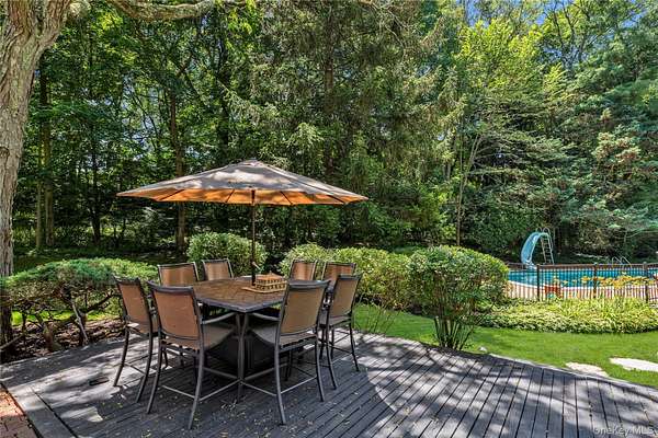 Prime location in the Village of Brookville featuring a very special opportunity to enjoy 5 car garage bays which includes a separate three-car garage structure. Near the end of a quiet cul-de-sac within close proximity to major roads tucked away privately and serenely set. Expansive 2 acre property with sweeping lawns and terrific curb appeal, the perfect place to unwind and enjoy nature's beauty. This timeless classic 5 bedroom and 3.5 bath residence has a layout very conducive to today's living, a center hall colonial with formal dining room, large living room and den both with french doors to the backyard. An eat-in-kitchen with centre island has a breakfast area as well. Mud room with laundry, bedroom and full bath round out the first floor. Upstairs a wonderfully designed landing accesses the spacious bedrooms and 2nd floor office with walls of windows overlooking the picturesque grounds. Outdoors is tranquil and peaceful, complete with swimming pool. First time available in a generation this house is a great investment to further customize as your own while enjoying all that the North Shore lifestyle has to offer. Nearby to shopping, country clubs, and fine dining, all just 25 miles to Manhattan. Jericho School District and Seaman Elementary. Glen Head zip code 11545. Be in immediately this year.