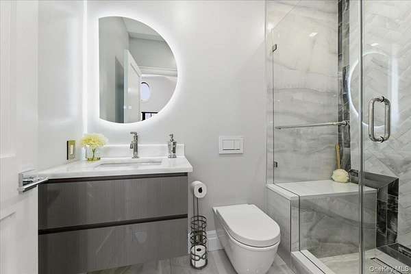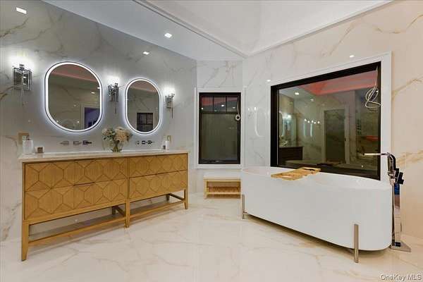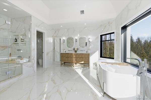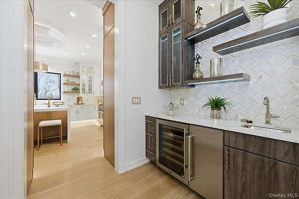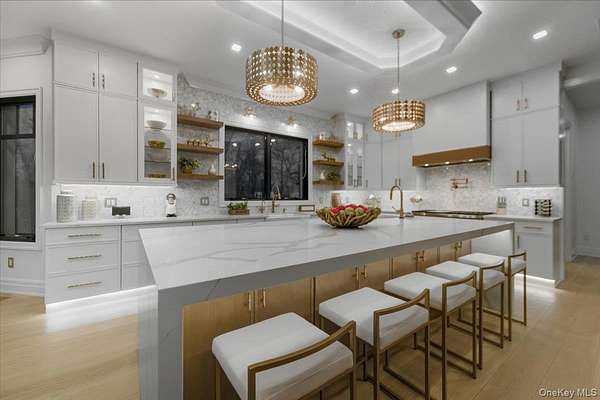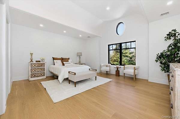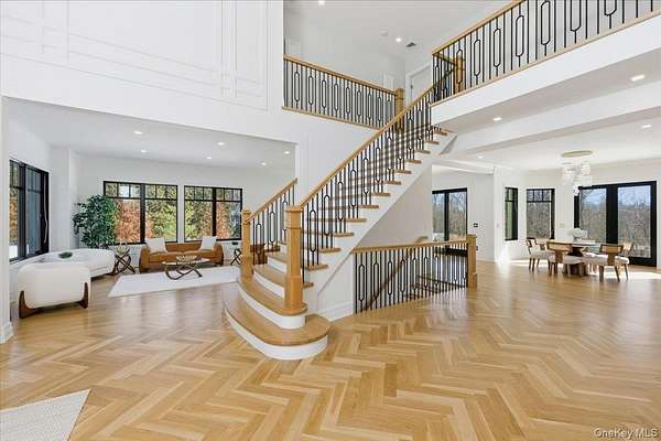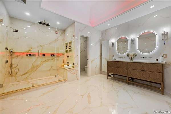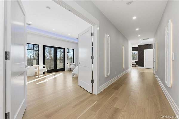 This all-brick New Construction home represents the height of modern luxury, perfectly situated on two acres within a quiet cul-de-sac in the Village of Old Westbury. Architectural excellence is defined by an open-concept floor plan with soaring 10-foot ceilings on the first and second floors, complemented by a massive 11-foot basement with a dedicated outside entrance. Large Anderson 400 series windows flood the interiors with natural light, highlighting custom millwork, striking feature walls, and 8-inch wide-plank white oak flooring throughout. The custom kitchen is a masterpiece of design, crafted with meticulous attention to detail and featuring a rare double-island configuration with stunning waterfall quartz countertops. This culinary space is anchored by 36-inch Gaggenau refrigerator and freezer columns, a Wolf range and wall oven, and an integrated coffee system. Further enhanced by dual Bosch dishwashers and True beverage drawers, the kitchen transitions into a refined butler's pantry with a wine cooler and dedicated ice maker. The main level flows seamlessly from the formal living room into the family room, which is anchored by a sleek gas fireplace. Every bedroom is a private retreat featuring its own en-suite bath and custom-fitted closets. The primary suite serves as a true sanctuary, boasting a spa-like bath with radiant heated flooring, a separate water closet, a custom dressing room, and a Juliet balcony overlooking the lush grounds and pool. Modern sophistication is integrated throughout, including an internal elevator serving all levels, a comprehensive central vacuum system, and a three-car garage with a built-in dog wash station. The home features an extensive Lutron lighting system, color-adjustable LED lighting, and a security system-all seamlessly managed via a central smart-home tablet. Built for ultimate reliability, the residence is generator-ready with dual Generac panels. The exterior is an entertainer's sanctuary, centered around a pristine in-ground gunite pool and spa framed by premium masonry. A masterclass in modern living, this estate offers a rare opportunity to experience the ultimate in Gold Coast sophistication.