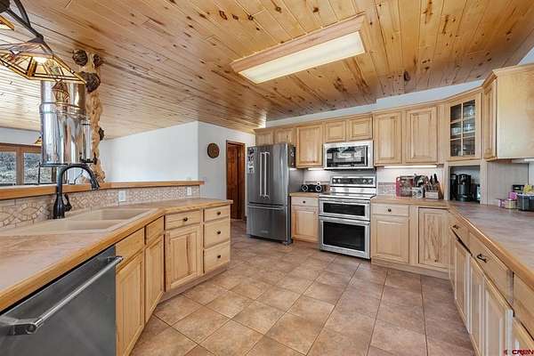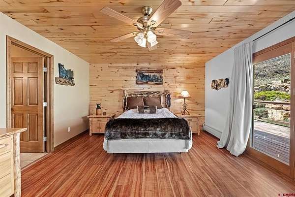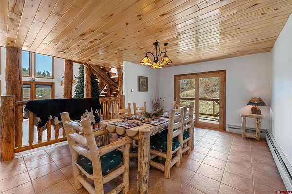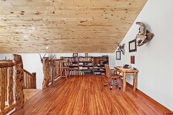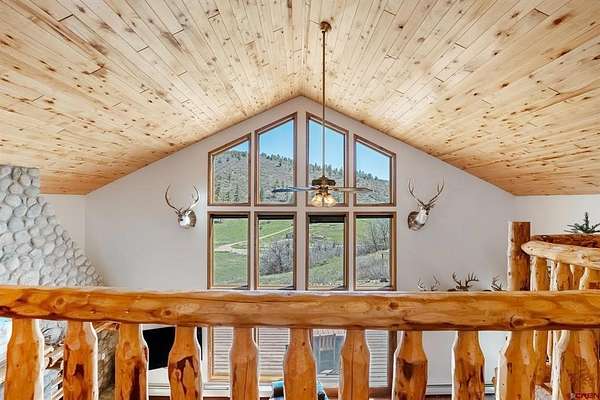 Lauren Ammerman, The Wells Group of Durango, LLC, C: 970-903-1333, lauren@wellsgroupdurango.com, www.laurenammerman.com: Welcome home to your true Colorado retreat in the mountains, adjoining thousands of acres of National Forest, huge valley views out your wall of windows, large Ponderosa trees, and room to play, this beautiful home nestled in Pine Springs Ranch offers full time mountain living in beautiful SW Colorado. Once inside you'll be spoiled with an open floor plan perfect for entertaining, large living room with a wall of windows allowing loads of natural light and delivers phenomenal sunsets, a stunning river rock fireplace for the perfect winter night, a dining room with access to the wrap around deck, and a beautiful and functional kitchen for the cook and entertainer. 20-foot-tall ceilings with natural Colorado wood beams, providing rich character and charm to the living space. The main level of the home features the open living space, two spacious bedrooms, full bath, and tons of storage. Upstairs of the home is another primary suite with huge closets, a beautiful en-suite bath, loft area perfect for a library or office, and a private patio looking to the National Forest. On the lower level of the home is a large laundry room with easy access to the huge storage room (perfect for toy storage or work out room), oversized two car garage, half bath, outside access for more covered storage. 1,800 square foot barn is versatile...ready for horses, campers, boats, adjacent to a garden area or dog yard. Quite possibly one of the best features is the deck that wraps the 3 sides of the home, perfect for summer evenings enjoying the elk visits, bird watching, did I mention SUNSETS? Sitting on this deck will bring healing, peace, and beauty all day long and you won't want to leave your Colorado home. Outdoors on this home you'll find easy maintenance metal roofing, a wood storage area, room for pasture, and useable space. Plenty of room for animals, toys, adventure on this 8 acres and Colorado home. Only 13 minutes to Bayfield, 23 minutes to Mercy Medical, and an easy 30 minutes to downtown Durango. Looking for animal watches, this home will not disappoint, elk, deer, turkey, bear, birds, and the like will frequent your yard and view.