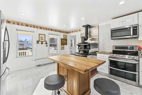 This farmhouse-style home has been completely remodeled from the studs and brought back to life with modern improvements while maintaining its historic charm. I was impressed by the original wood floors upstairs and the wood stove in the kitchen, which gives the home such old-fashioned Maine charm. The owners have gone above and beyond expectations for a home remodel, bringing you a home that offers great value. You will appreciate the new roof, new heating system, new electrical and plumbing, new insulation, new kitchen, and additional bathroom with sauna. The owners installed a new connection to public sewer. Additionally, the barn was raised to pour a new foundation complete with TC Hafford water management system and two sump pumps. You will appreciate the old beams and barn boards that still exist. The land includes a large yard space with fencing, a sliding privacy gate, landscaping around the barn, and a large equipment storage shed. There is so much more to this home for you to experience! Pre-listing inspection available.