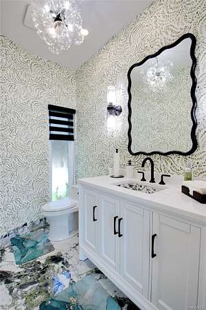 - Cathedral Ceiling(s), Central Vacuum, Chandelier, Chefs Kitchen, Crown Molding, Double Vanity, Eat-In Kitchen, Entrance Foyer, First Floor Bedroom, First Floor Full Bath, Formal Dining, Granite Counters, High Ceilings, Kitchen Island, Open Floorplan, Pantry, Primary Bathroom, Walk-In Closet(s), Wet Bar