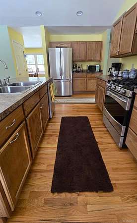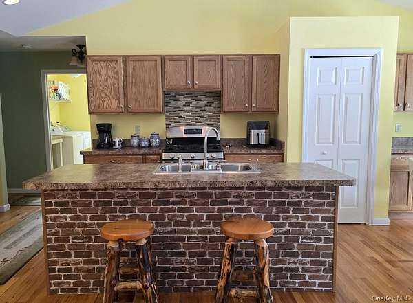 Custom-built waterfront home set on 2.5 private acres along Black Brook, offering exceptional views, privacy, and meticulous landscaping. The property features a fenced vegetable garden, a 38*56 fenced area for pets, a private trail to the brook, and a backyard firepit with no neighboring homes in view. The well-maintained home welcomes you from a covered porch into an open floor plan with oversized windows, hardwood floors, and a spacious great room with vaulted ceilings and a gas soapstone stove with battery backup. The kitchen includes a center island with double sink, stainless steel appliances, and a large pantry, flowing seamlessly into the dining areas. The main level offers a second bedroom with double closets and an adjacent full bath, a convenient laundry room, and easy access from the attached two-car garage. The primary suite features a walk-in closet, a private en-suite bath with dual sinks, makeup vanity, two-person corner tub, stall shower, and peaceful views of the brook. Additional highlights include a full unfinished walk-out basement, back deck, French drain, central air, and beautiful landscaping throughout. Located in the desirable town of Forestburgh, close to shopping and amenities while tucked away on a serene 2.5-acre oasis. Homes like this are rare-an exceptional opportunity. Property Features Waterfront on Black Brook 2.5 acres Custom-built home Open floor plan Vaulted ceilings Hardwood floors Gas soapstone stove with battery backup Stainless steel kitchen appliances Kitchen island with double sink Pantry Primary suite with en-suite bath Main-level laundry Full unfinished walk-out basement Attached two-car garage Back deck French drain Central air Fenced garden and fenced pet area Firepit and private trail to the brook