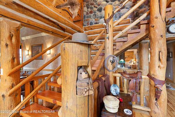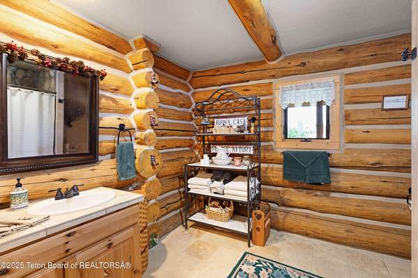CUSTOM HAND-HEWN LOG HOME on Cedar Creek. This one-of-a-kind log home offers the perfect blend of rustic charm and modern comfort, set in a stunning natural setting along year-round Cedar Creek. The open floor plan and thoughtful finishes create a warm, welcoming retreat with breathtaking mountain views from every window. Hickory hardwood floors throughout. Striking elk antler chandelier and a grand stone fireplace. Gourmet kitchen featuring stainless steel Maytag appliances with washer/dryer included, double fridge. Covered side porch with 34' x 14' redwood decking. 36' x 36' carriage house with 3 car garage and 51 x 24' RV barn. Amish-built greenhouse with in floor heat. This extraordinary property combines timeless craftsmanship with modern amenities in a serene private setting.