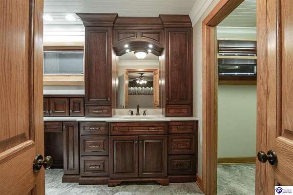 Welcome to 260 Bates Road in Elizabethtown -- a rare opportunity to own 5.03 acres in the desirable Forest Springs subdivision less than 1 mile from Ring Road. This sprawling brick ranch offers approximately 2,867 square feet above grade plus a full basement, providing over 4,000 square feet of total living space. The main level features a welcoming foyer, kitchen with island, custom cabinetry, and breakfast nook, open floorplan that incorporates kitchen, dining, and comfortable living room together, sunroom overlooking the backyard, laundry room, 1/2 bath, private primary suite with its own bath, and 2 more spacious bedrooms and full bathroom. Finishes include hardwood & ceramic flooring, custom shelving, granite, solid wood trim, and much more. The full basement expands your living options with a family room, additional bedroom and full bath, plus unfinished space with direct access to the attached garage -- ideal for storage, hobbies, or future expansion. Outdoors, enjoy the patio and firepit area nestled in the serene backyard with woods to one side, offering privacy and room to roam that's hard to find this close to town. A detached garage provides additional space for vehicles, equipment, or workshop needs. Located just minutes from I-65, this property offers quick access for commuters to Louisville or Bowling Green while remaining close to Baptist Health Hardin, shopping, restaurants, and everyday conveniences in Elizabethtown. If you've been looking for acreage, space, and location all in one package -- this is it.