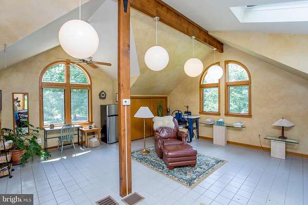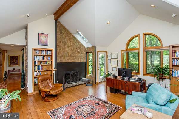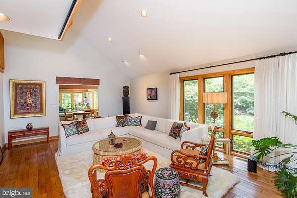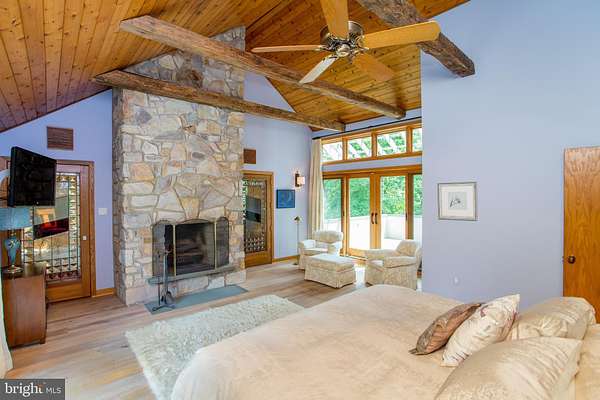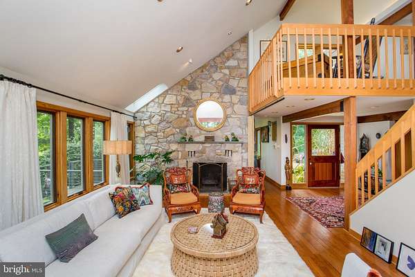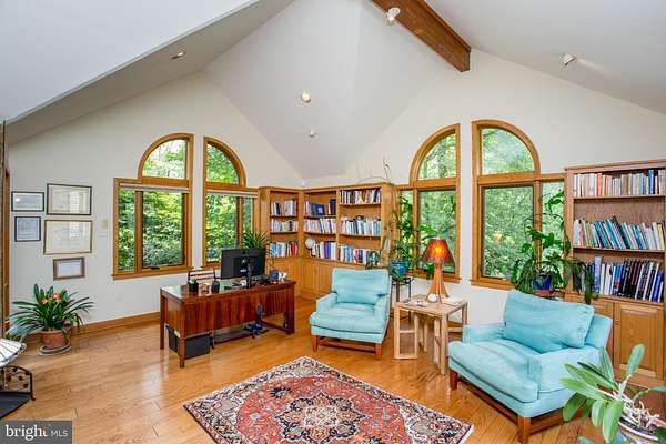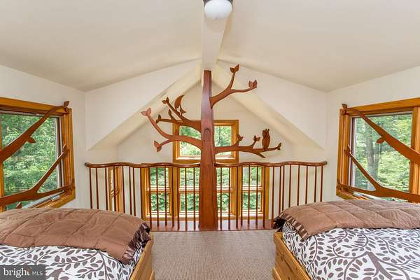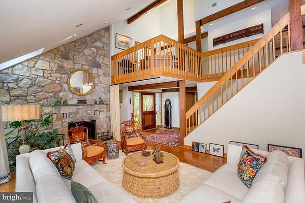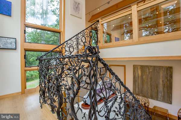 Unique, serene and at one with nature and natural beauty, Havenwood is an extraordinary estate available for the first time since it was designed and custom built. In addition to being a luxurious house with gorgeous grounds, it has evolved into being a one-of-a-kind living art gallery, inside and outside. From the moment you drive up to the entrance of the property and see the handcrafted stone and iron gate you will realize that something special awaits you. The sophistication and beauty of the home is matched by the ten acres of private and beautiful land that have undergone an amazing transformation. There are so many architectural and distinctive features inside and outside they are detailed in a separate page together with the story of Havenwood. This is a brief overview describing what you will see when you visit. From the long driveway, pass through another custom gate to the intricately designed paver courtyard. Step inside to the foyer through a custom leaded glass front door with a sunburst design. Readily apparent is the beautiful woodwork, soaring ceilings and windows, and elegant free flowing floor plan. A separate library is the first place to see an incredible wall of cement art that surrounds a fireplace. The artisan crafted a cement wall that looks like bark with 3-D mushrooms growing from it. The living room with a Heatilator woodburning fireplace is filled with natural light and the beauty of the outdoors. The adjoining dining room is part of the open floor plan with family room, casual dining area in front of another fireplace, and a gourmet kitchen with high-end appliances. These areas have comfortable cork flooring. A window enclosed room with cedar walls is a multi-purpose place to enjoy in all seasons and it opens to a large deck area. A main floor primary bedroom suite has a stunning bathroom and a powder room and laundry room with a dog washing area complete this level. Upstairs has three bedrooms. The spacious primary bedroom suite includes a sitting area, fireplace, two private balconies, a dressing area and closets, luxurious bathroom, and a separate room for meditation, yoga, or whatever suits your lifestyle. Enter it through two stained glass doors and take note of the intricate stonework. A dramatic 2-level bedroom called "treetops" has a sitting area that opens to its own balcony and the stairs take you up to the incredible bedroom with built-in beds and intricate woodwork in a tree and branches design. There is another bedroom, a beautiful hall bathroom, an open loft area and down the hall is an office with staircase to the garage. A delightful surprise is the finished basement that is the legacy of the late owner's passion for model trains. You will likely never have seen anything like this. Adults to young children will appreciate the intricate layout and decorative accessories of a "real life" train route through a town. Outdoors the water features include a swimming pool, outside showe,and koi pond. Walking trails, a labyrinth, a raised organic garden with water piped to it, a charming chicken coop and even a maypole together with exquisite specimen plantings and trees provide a park- like setting filled with flora and fauna and daily enjoyment. And it's a birdwatcher's paradise. Two separate buildings provide many possibilities for use. Above the 2-car detached garage is a spacious open room with bathroom that was once used as an artist studio. Deeper into the property there is a standalone two-level "entertaining center" built with many distinctive features incorporated into its design. Large gatherings are extraordinary in this setting. The ambiance and character of this estate is unmatched. A haven of tranquility, luxurious living, and being one with nature provides a superb lifestyle that will wrap you in comfort and calmness. Welcome home to Havenwood!