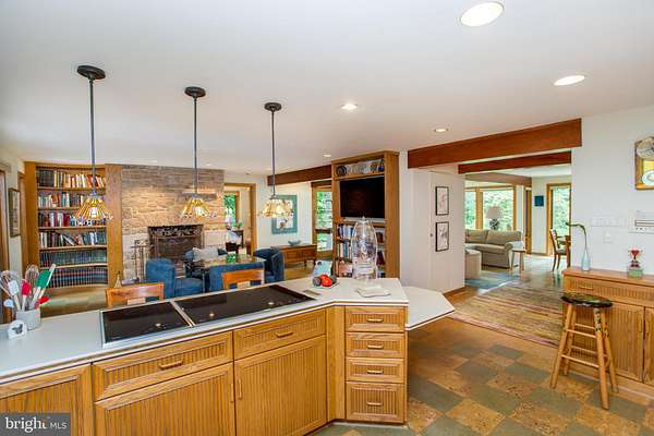 - Breakfast Area, Built-Ins, Carpet, Ceiling Fan(s), Combination Dining/Living, Dining Area, Eat-In Kitchen, Entry Level Bedroom, Family Room Off Kitchen, Island Kitchen, Laundry Chute, Open Floor Plan, Recessed Lighting, Soaking Tub Bathroom, Sound System, Stain/Lead Glass, Stall Shower Bathroom, Studio, Walk-In Closet(s), Walk-In Shower Bathroom, Window Treatments, Wood Floors