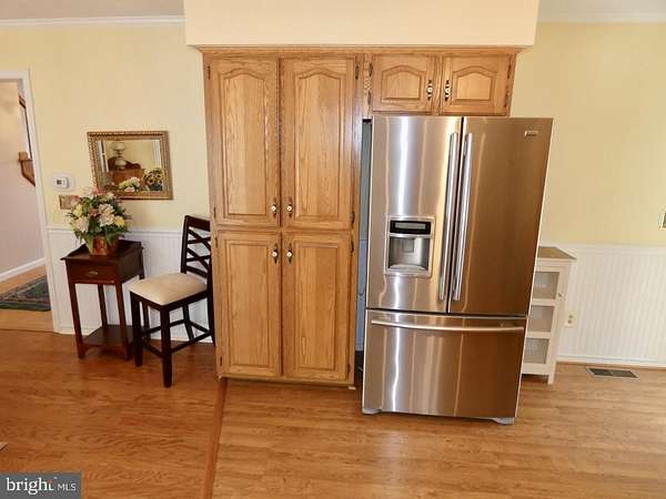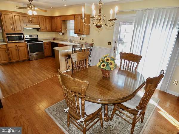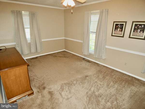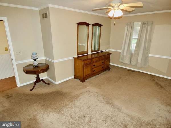 - Attic, Carpet, Ceiling Fan(s), Chair Railings, Combination Kitchen/Dining, Crown Moldings, Entry Level Bedroom, Island Kitchen, Pantry, Pellet Stove, Primary Bath(s), Recessed Lighting, Stall Shower Bathroom, Traditional Floor Plan, Tub Shower Bathroom, Wainscotting, Walk-In Closet(s), Walk-In Shower Bathroom, Window Treatments, Wood Floors