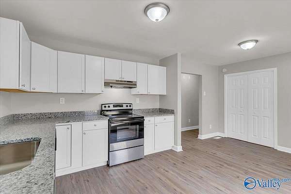Est $993/moUpdated 4 bed/2 bath home with new roof on 3 acres in Cullman. Back yard is completely framed by a tranquil flowing creek. Brand new eat-in kitchen with new kitchen cabinets, appliances and granite. Both bathrooms with brand new tub/showers, vanity and sinks. All new LVP flooring and paint throughout.