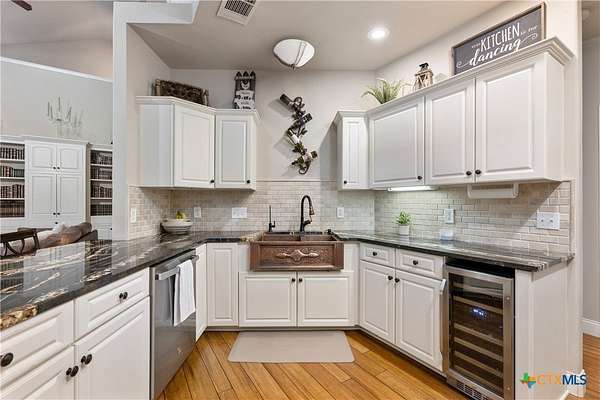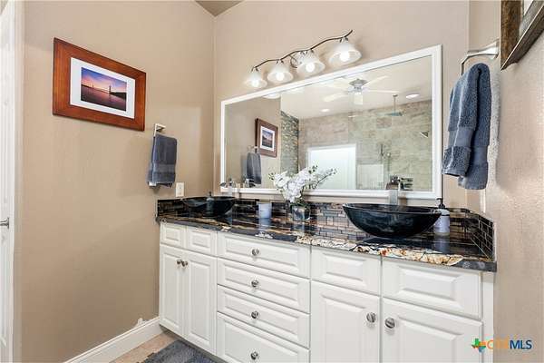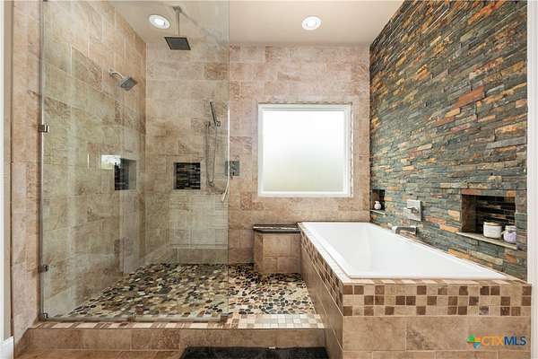 - All Bedrooms Down, Bookcases, Breakfast Bar, Cathedral Ceilings, Ceiling Fans, Double Vanity, Eat In Kitchen, Game Room, Garden Tub Roman Tub, Granite Counters, High Ceilings, Kitchen Dining Combo, Kitchen Family Room Combo, Main Level Primary, Pantry, Primary Downstairs, Separate Shower, Soaking Tub, Walk In Closets