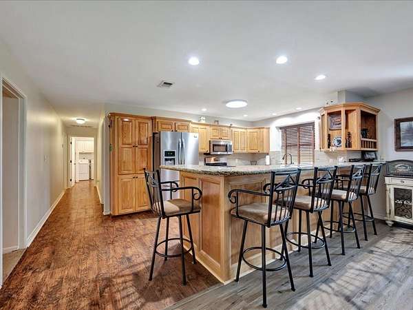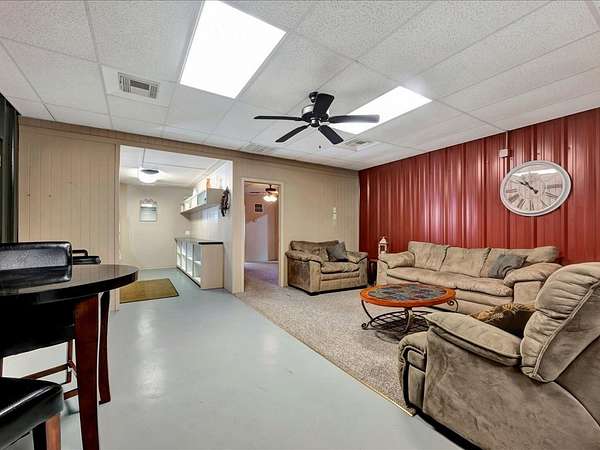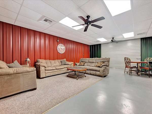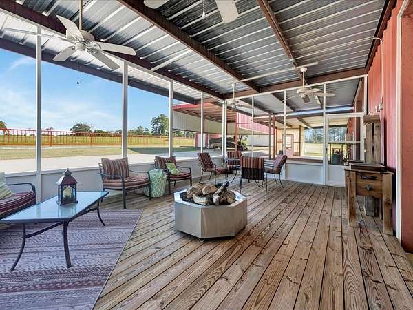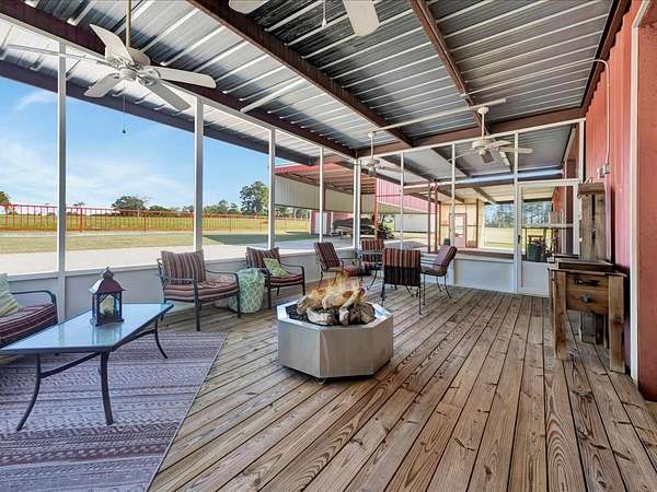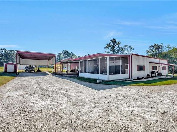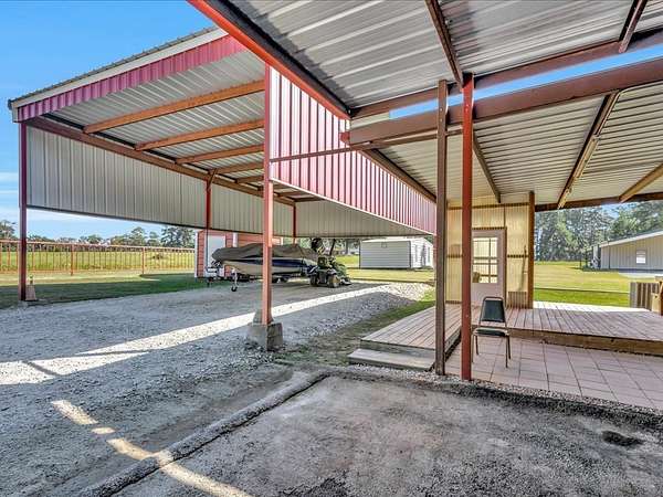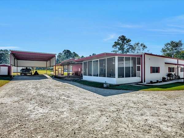 Welcome to a one-of-a-kind barndominium retreat on just under 4 beautiful acres, where comfort and versatility come together. This open-concept home features an inviting layout that flows into a spacious, fully equipped shop—perfect for hobbies or projects. A heated and cooled office makes working from home easy, while the attached entertainment suite with guest quarters offers its own private space. Enjoy gatherings in the second full kitchen, living and dining areas, and a large roll-up door leading to a screened-in porch. Outside, you'll find an RV cover with full hookups, a covered lean-to, and a unique 3-story treehouse with electricity. A place to live, work, and enjoy it all. Schedule your showing today and come experience it for yourself.