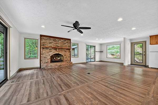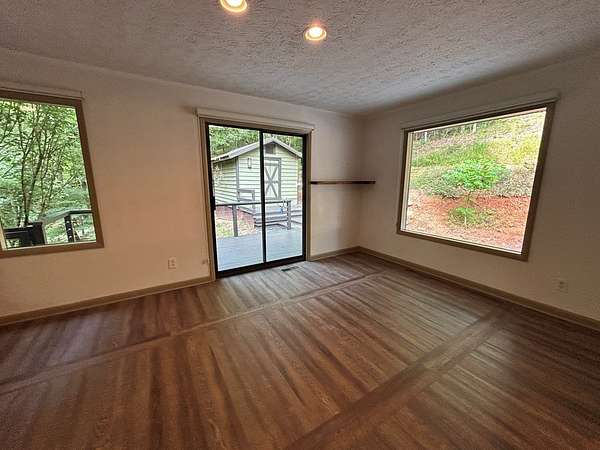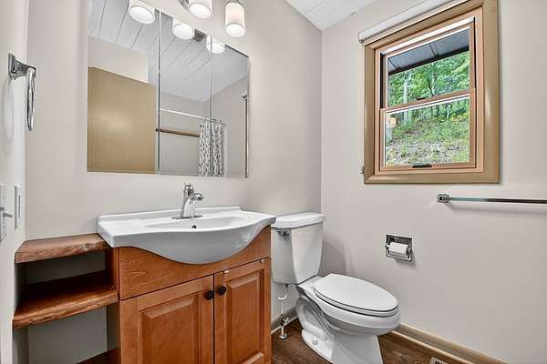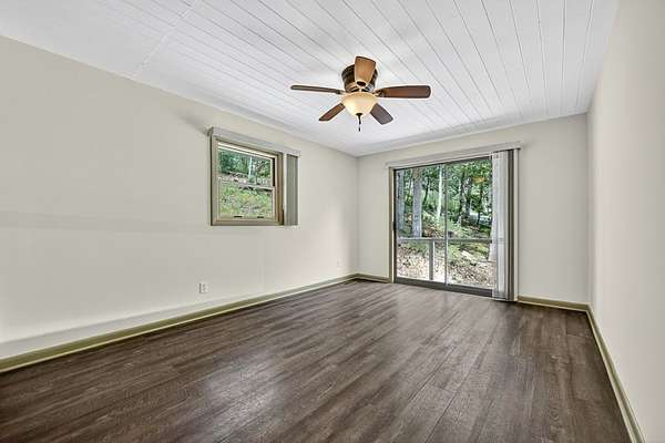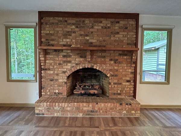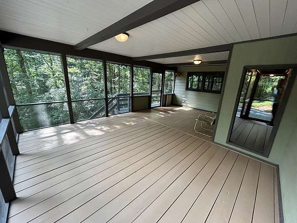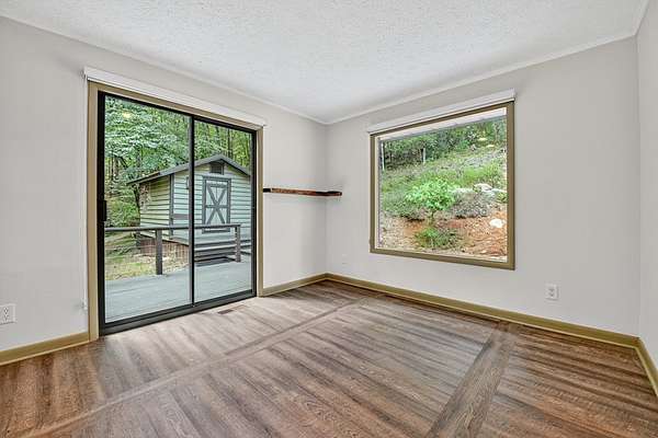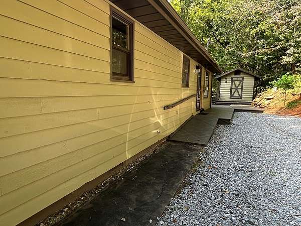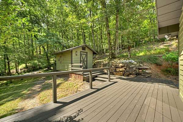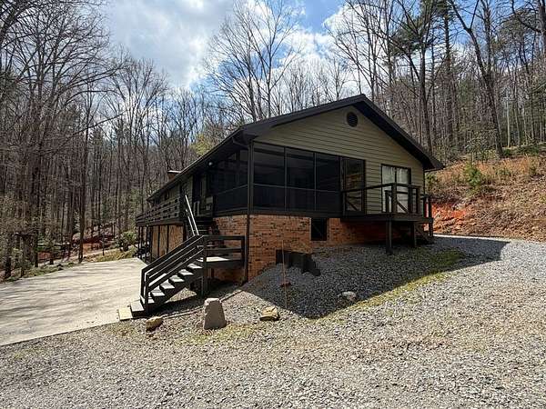 "Highly Desirable" ASKA ADVENTURE AREA...w/Deeded Access on the Upper Toccoa River. A perfect blend of Mountain Serenity & Everyday Convenience located only 6 miles from Downtown Blue Ridge & only 2/10th mi off the Aska Corridor. Beautifully REMODELED IN 2011 This "One Level" Cabin/Ranch is built on a solid brick foundation with CEDAR LAP Siding a Durable Metal Roof (2015). A circular drive & easy one-step or Ramp Entry provides true one-level living. Move In READY with NEW Plumbing, Electrical Fixtures, Flooring, Windows (Several Very Large Fixed Glass) New Countertops in Kitchen & Baths..... along with fresh interior paint, creates a move-in-ready feel thru-out. The inviting Great Rm features an Arched-Top BRICK MASONRY Wood-Burning Fireplace w/a FULL Brick Chimney & Hearth (currently fitted w/Gas logs). The Wrap Around Porch features Modern "Cable Pickets". Front Entry is complemented by Custom Built-in Bookshelves. The Kitchen showcases Birch Cabinetry, Updated countertops & New sink. Both Bathrooms have been tastefully upgraded w/Double VESSEL Sinks & NEW fiberglass Shower Units. Custom Updated Details include Barn & Pocket doors, Polished Pine Accents & Transom Interior Windows to enhance the character & functionality. Outdoor living shines w/a spacious 18' x 22' Screened Porch & Newly Replaced Decking perfect for Relaxing or Entertaining. Additional features include a main-level laundry room, pull-under 1-Car Pull Under Garage w/10-foot ceiling, dedicated well Pump Rm in the Lower Level & a Detached Storage Building connected by a Deck to the Main House. Recent updates also include newer appliances, hot water heater & serviced HVAC, along with high-speed fiber internet availability. The subject property line extends across Flat Creek Crossing to the center of the Branch. This move-in-ready retreat offers Comfort, Quality, and Easy Living in one of Blue Ridge's most sought-after locations in the Highest Concentration of National Forest in Fannin County.
